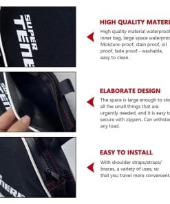 5. Características: 1. El revestimiento interior es de lona fuerte e impermeable. 2. Fijación segura y fácil de quitar del vehículo. 3. Ligero, alta capacidad de carga, gran capacidad utilizable. 4. Protección impermeable y resistente a la humedad, impermeable. 5. Diseño nuevo Antideslizante, evita daños en la pintura y fijación segura.