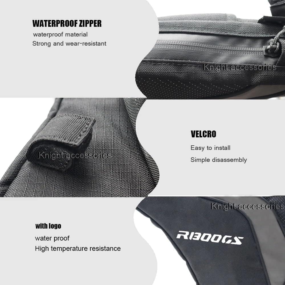 Nuestras bolsas de correa protectora repelentes al agua son ideales para todo lo que le gustaría tener a mano cuando está en movimiento: papeles, teléfono inteligente, gafas de sol, llaves, multiherramienta, etc. Las hemos diseñado para adaptarse a las barras de protección del tanque originales del R1300GS. Se pueden fijar fácil y seguramente a la barra de protección. La posición garantiza una distribución óptima del peso. Utilizamos tejido Cordura 1000 repelente al agua y recubierto de teflón, que no se decolora y ha demostrado ser extremadamente resistente y resistente al desgaste. Las superficies exteriores forradas brindan doble protección: el contenido de las vibraciones y el soporte de la fricción. La forma compacta, el corte y el tejido de alta calidad evitan el abultamiento y aleteo de las bolsas, que son dimensionalmente estables incluso cuando están vacías. Las cremalleras de marca son impermeables y a prueba de polvo y están equipadas con cremalleras prácticas. Típico: El forro azul garantiza claridad. Función: Opción de equipaje adicional en las barras de protección del tanque, ideal para todo lo que necesita estar al alcance fácil en movimiento. Simplemente deslícelo sobre el soporte de protección del tanque y fíjelo de forma segura al soporte con Velcro. Posición óptima y conveniente y distribución perfecta del peso. Total libertad de movimiento. Tejido Cordura 1000 repelente al agua y recubierto de teflón, resistente, resistente a la abrasión, no se decolora. Las superficies exteriores forradas protegen el contenido de las vibraciones y el soporte de la fricción. Sin abultamiento ni aleteo de las bolsas, que son dimensionalmente estables incluso cuando están vacías. Nuestro forro interior azul típico garantiza claridad. Cremallera práctica, impermeable y a prueba de polvo. Material: Tejido Cordura 1000, resistente, repelente al agua, recubierto de teflón, repelente a la suciedad, resistente a la abrasión, no se decolora. Lista de productos: izquierda y derecha (1 par). Montaje: Para R1300GS 2023 2024