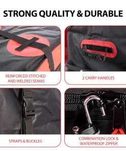 100% DISEÑO IMPERMEABLE: Construida con tela Oxford duradera y un revestimiento de lona, esta bolsa de carga cuenta con cremalleras resistentes al agua y una cortina de lluvia extendida, asegurando que sus pertenencias permanezcan completamente secas incluso en las tormentas más fuertes. ESPACIOSA CAPACIDAD DE ALMACENAMIENTO: Ofreciendo 14.5 pies cúbicos de espacio de almacenamiento (55″ x 19″ x 24″), esta bolsa brinda suficiente espacio para acomodar todas sus necesidades de viaje. Ya sea q…}