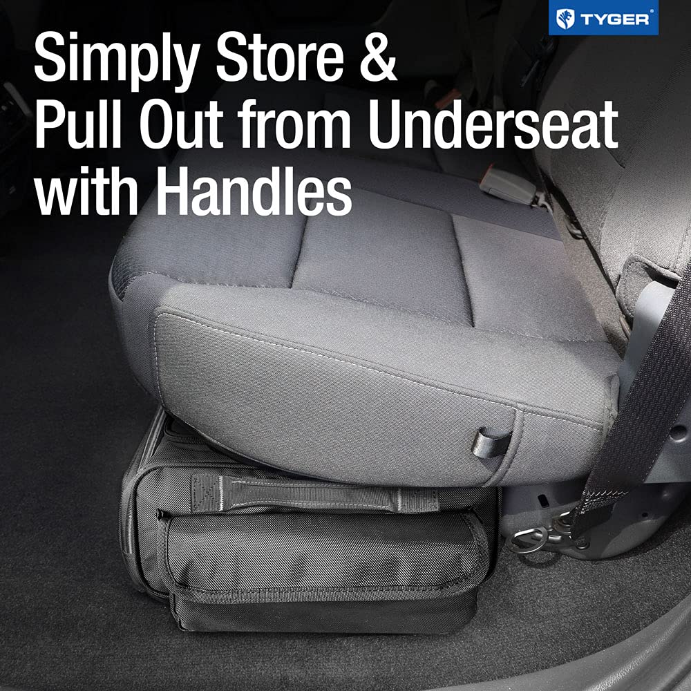 1. SOBRE PARA CAMIONETAS DE TAMAÑO COMPLETO – Solo cabe debajo de los asientos traseros de camionetas de tamaño completo de cabina doble. Esta bolsa combina los beneficios de una caja de almacenamiento con la conveniencia de un equipaje de mano para asegurarse de que siempre tenga disponible su equipo para actividades al aire libre y herramientas de trabajo mientras se desplaza. El ajuste preciso varía según el modelo del vehículo. Asegúrese de que no haya almacenamiento existente debajo del asiento o barras/transversales instaladas en su vehículo.