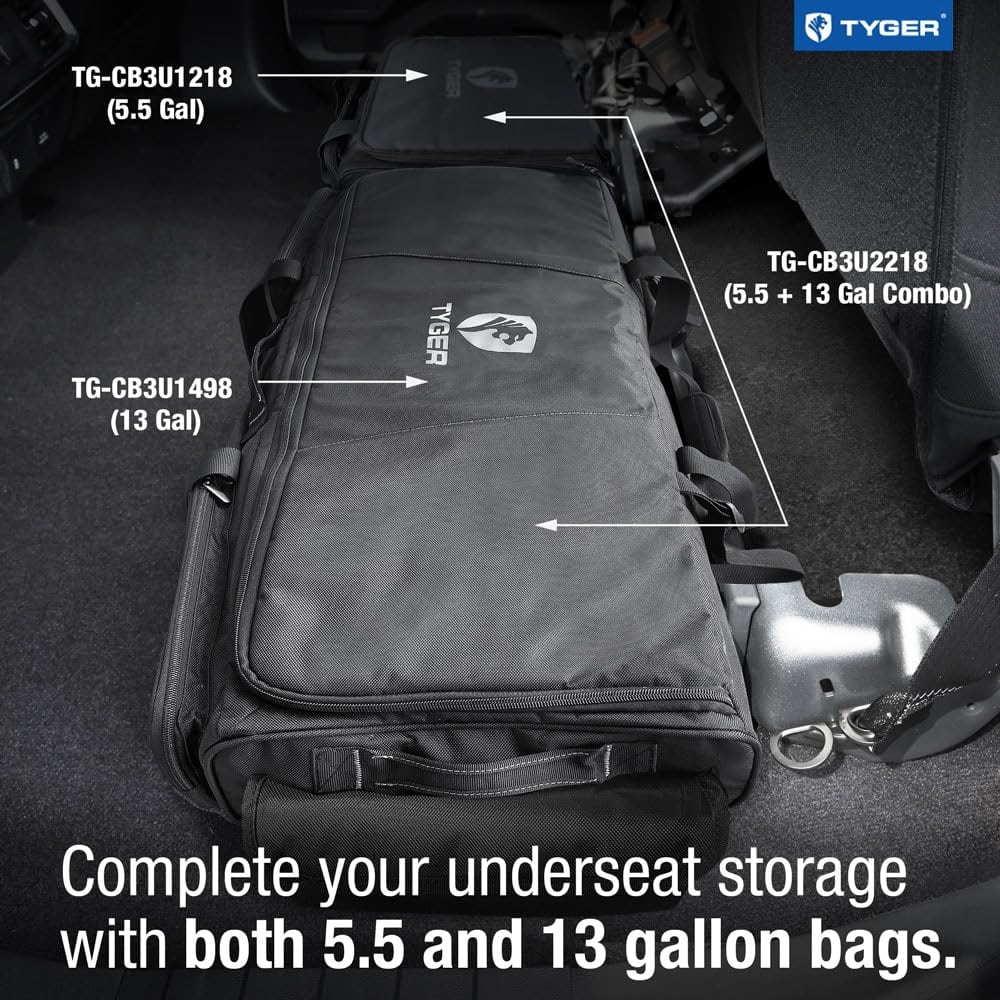 4. TAMAÑO Y MODELOS – Tamaño pequeño: (LxWxH) 16.7″ x 12.7″ x 6.25″ | Volumen: 5.5 galones | Combine con el modelo de tamaño grande para completar el almacenamiento debajo del asiento: Combo SKU TG-CB3U2218.
