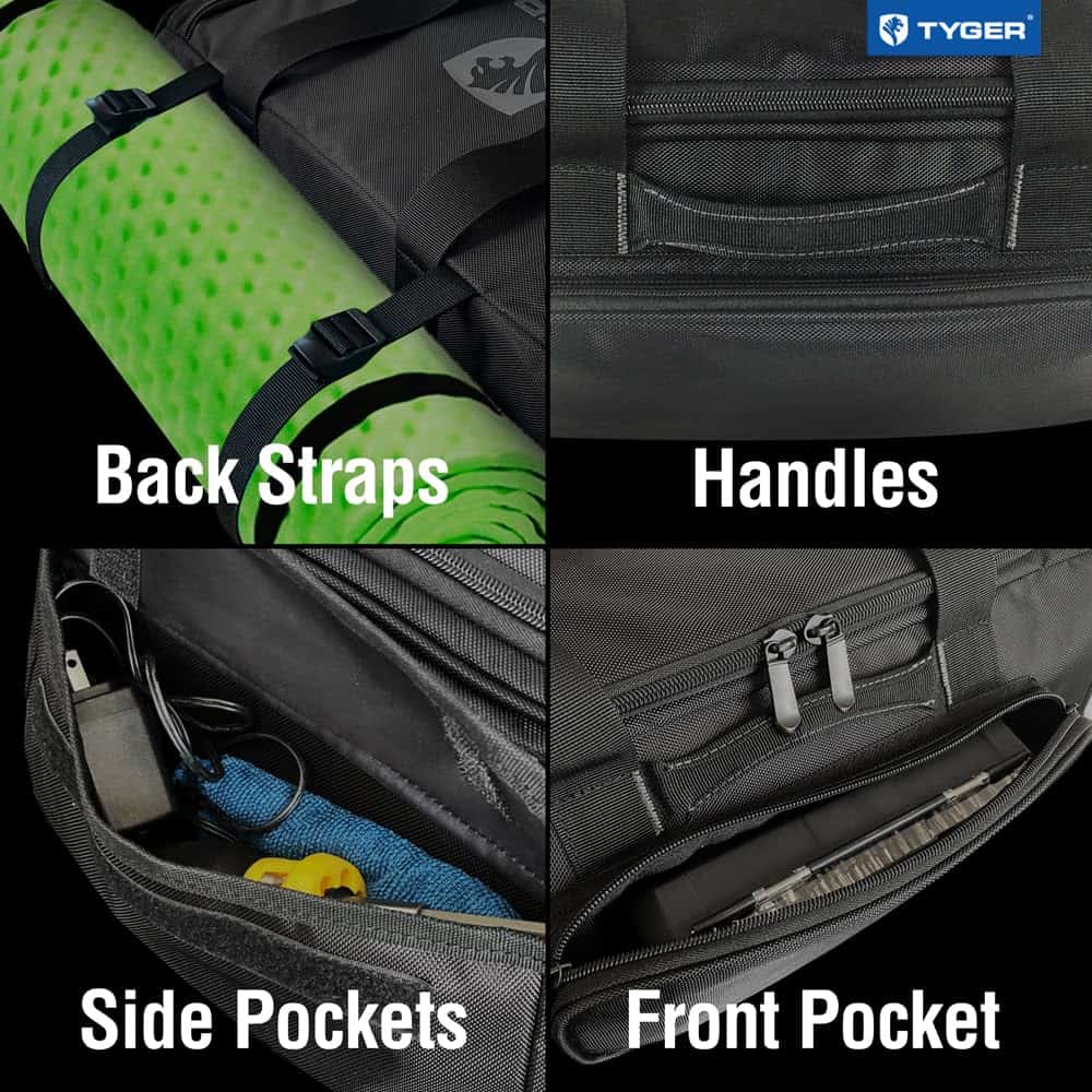 2. CARACTERÍSTICAS – Correas de mano | 1 separador interior | Gran bolsillo interior de malla con cremallera | Correas de sujeción para hombro | Bolsillos frontales y laterales | Asas extraíbles | Pies antideslizantes.