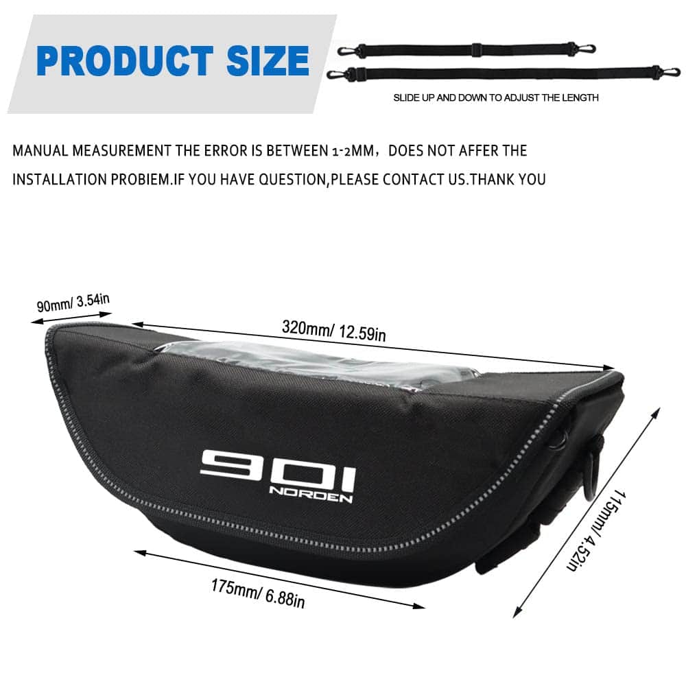 Bolsa de almacenamiento para manillar de motocicleta a prueba de agua y polvo con compatibilidad con Norden901 2022. Esta bolsa tiene gran capacidad y compartimento extra con lugar para almacenar bolígrafos, tarjetas bancarias u otros objetos pequeños. Su compartimento principal grande tiene una cremallera impermeable y a prueba de polvo para mantener cerrado el interior. Incluye un conector de cable impermeable para mantener el celular cargado mientras viaja. Fácil de llevar, puede ser utilizada para llevar celular, billetera, etc., y también puede almacenar suministros de viaje a corto plazo. Para preguntas, por favor contacte al vendedor. ¡Gracias!