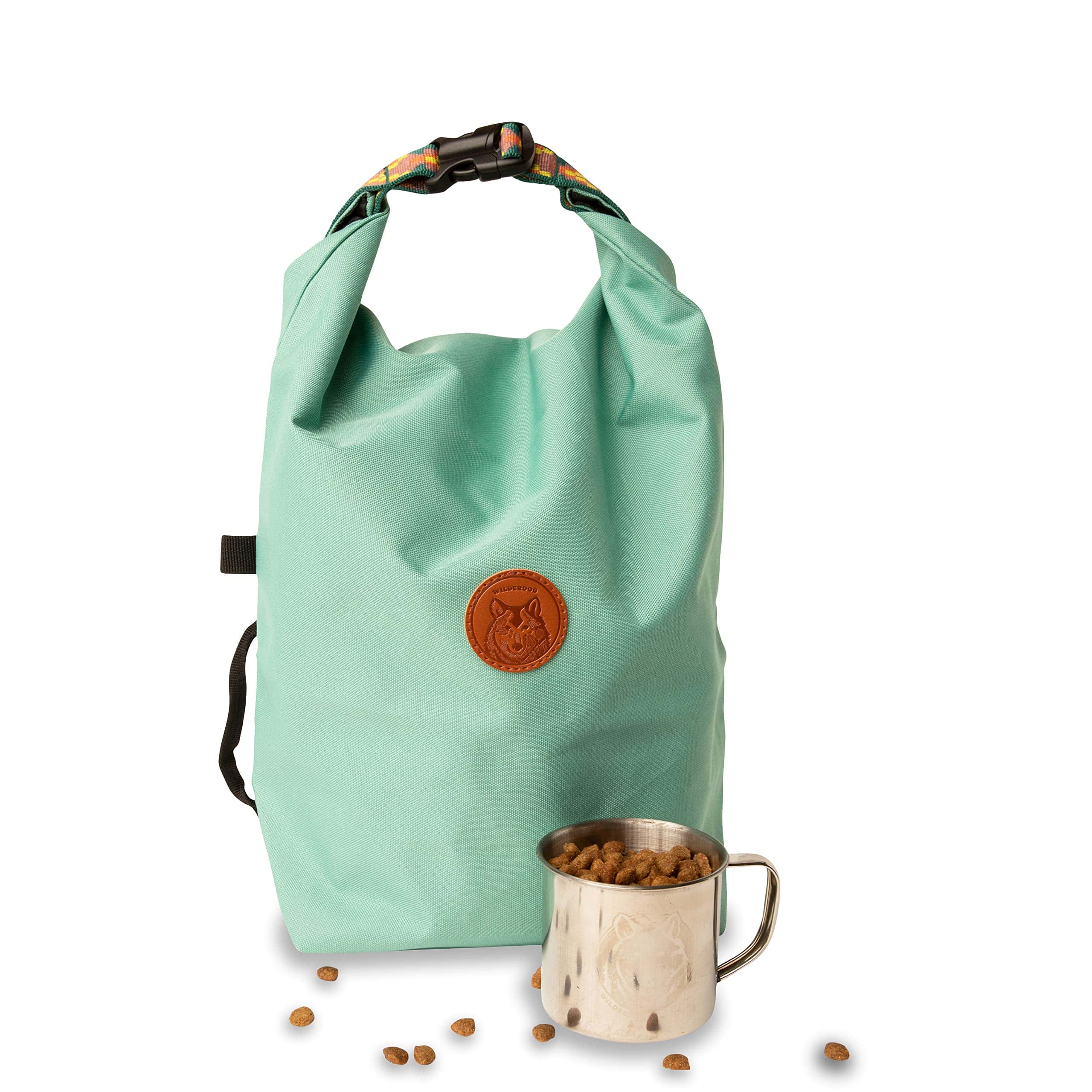 «¡La manera perfecta de llevar la comida de tu perro contigo en cada viaje! ¡Lo mejor es que ya no tendrás que usar bolsas de plástico desechables! Llena con kibble en casa, enrolla, cierra con el clip y ¡sal a la próxima aventura! Nuestro porta-kibble portátil también viene con una taza de acero inoxidable – con capacidad para aproximadamente 1.25 tazas de kibble – para porcionar las comidas de tu mascota. Con un asa en la parte superior y otra en el lateral, la Bolsa para Perro es fácil de llevar. ¡Incluso tiene un lazo adicional en el exterior para sujetar tu Bowl de Excursionismo!»