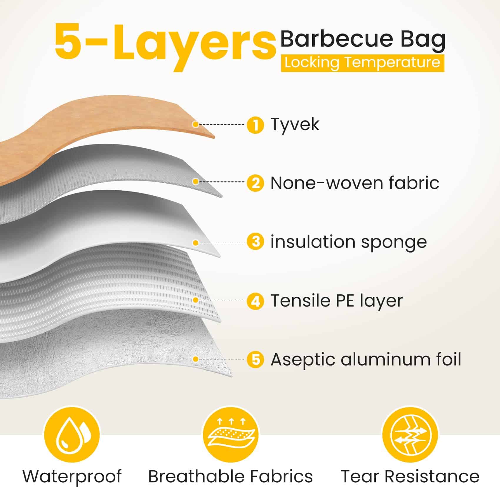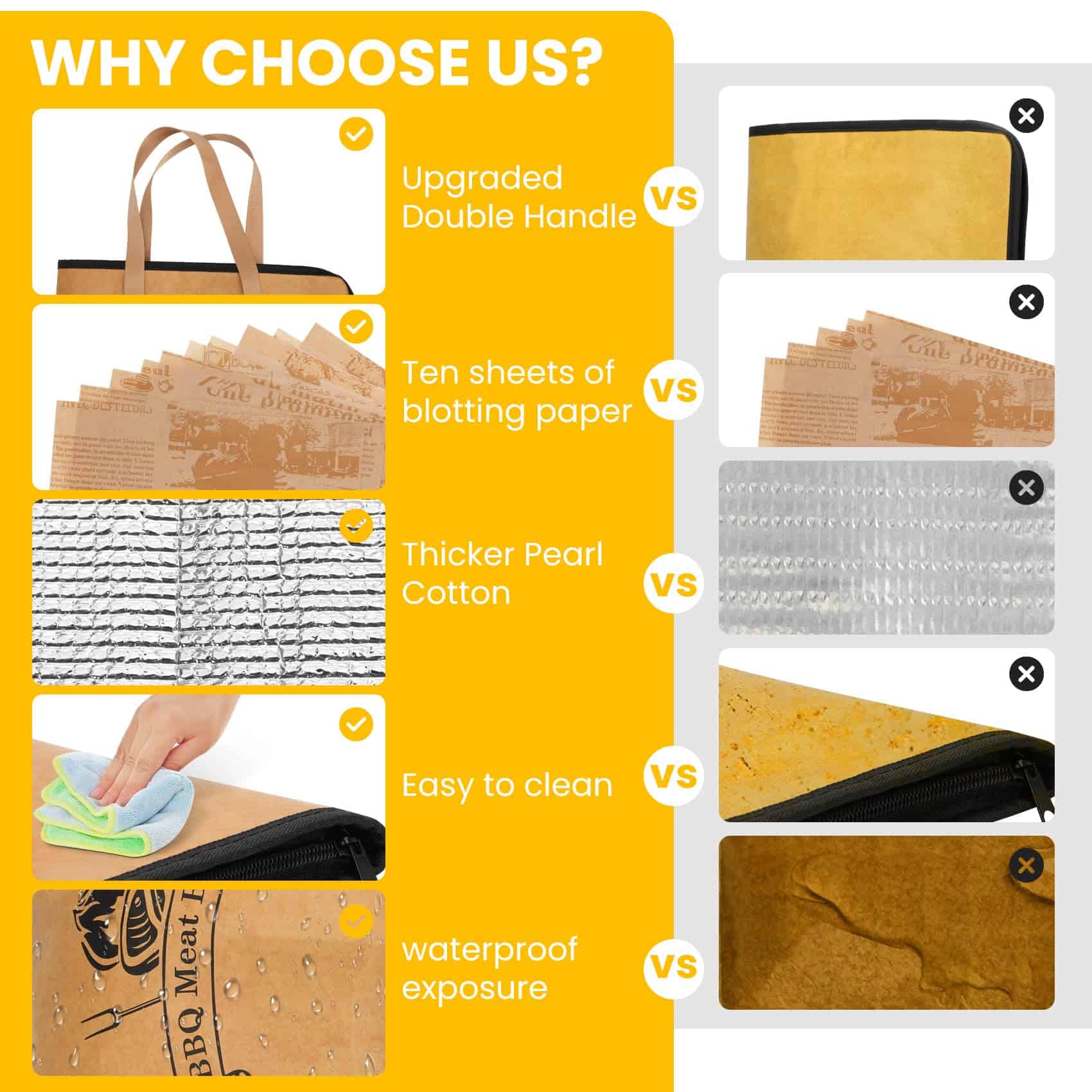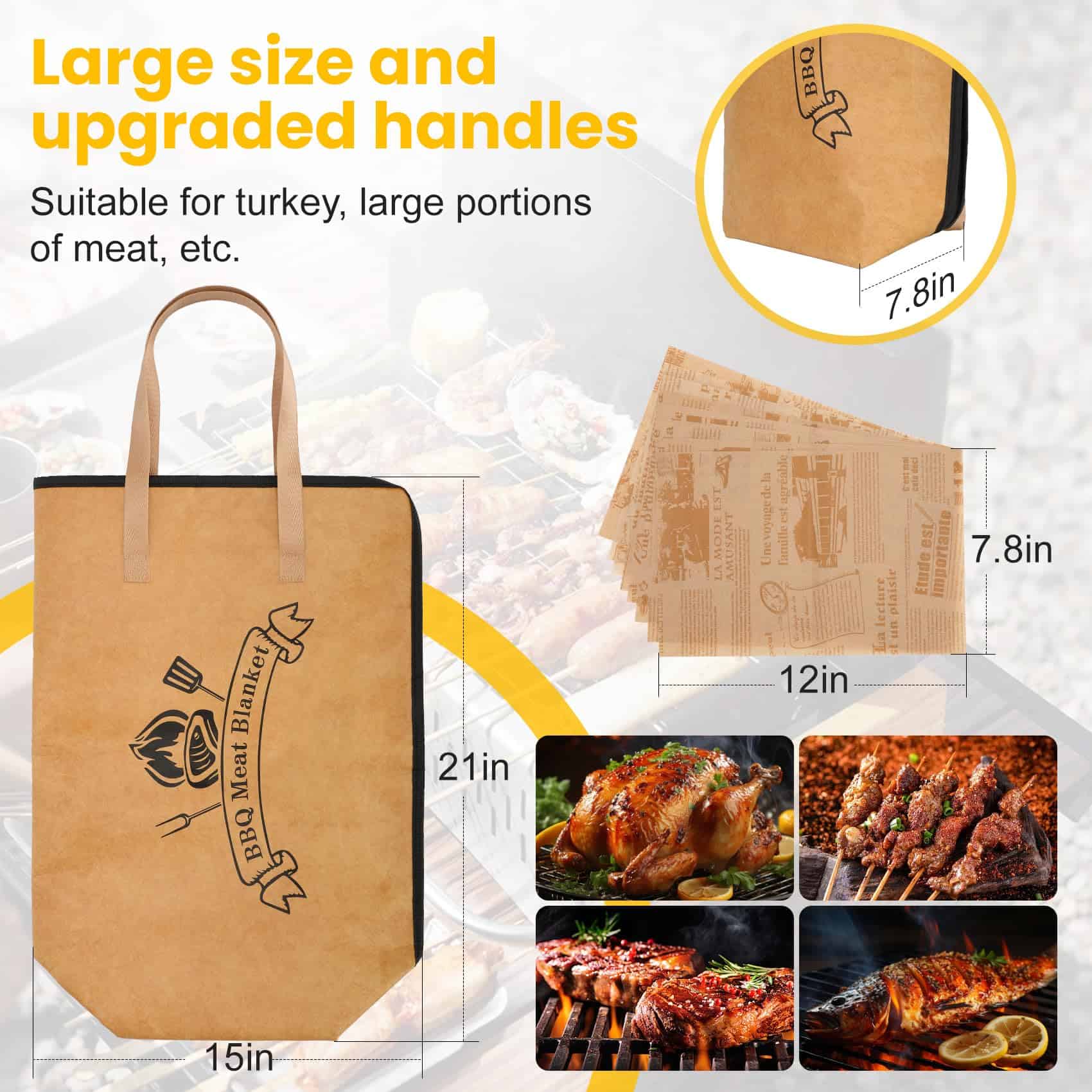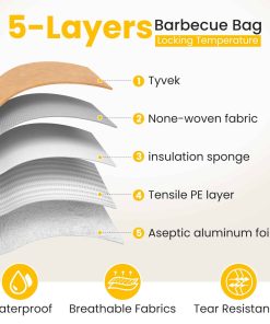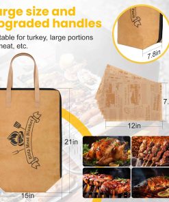 La bolsa de reposo para carne de barbacoa es de tamaño grande, mide 21 x 16 x 8 pulgadas, tamaño extra grande, la manta para carne de barbacoa puede contener pechugas grandes, pavo, pierna de cerdo y otros ingredientes, ayudándote a mantener tu carne caliente y fresca durante el periodo de reposo después de la cocción, bolsa de reposo para carne adecuada para todo tipo de escenarios, fiestas de barbacoa, campamentos, picnics, etc. La bolsa de barbacoa agrega diez hojas de papel absorbente de aceite para envolver la salsa y evitar que se escape; la manta de barbacoa está diseñada con una gran abertura para facilitar la colocación o extracción de la carne de barbacoa, asas dobles con asas de cinta para ahorrar energía, el borde de la manta de barbacoa utilizada para reposar la carne está cosido con hilo doble para asegurar que el producto no gotee aceite o agua. La manta de barbacoa adopta un diseño de aislamiento de 5 capas, hecha de papel encerado de DuPont de doble cara resistente y duradero + tela no tejida + relleno de PE a prueba de fugas + esponja aislante espesa + papel de aluminio espeso, bolsa de reposo para carne reutilizable, alternativa a la bolsa de aislamiento desechable. Esta bolsa de manta de barbacoa es ligera, duradera, fácil de doblar, perfecta para llevarla contigo, resistente al agua y a prueba de fugas, la manta de reposo para carne viene con asas dobles para transportar, el diseño de cremallera resistente garantiza la seguridad, y la bolsa de reposo para carne es fácil de almacenar y transportar. Nuestras mantas de barbacoa son perfectas para una variedad de eventos y entregas de barbacoa. Las mantas de reposo para barbacoa son fáciles de limpiar con un paño húmedo y fáciles de lavar con jabón y agua tibia, incluso si se utilizan con frecuencia, se mantendrán limpias y asegurarán que cada barbacoa sea sin complicaciones.