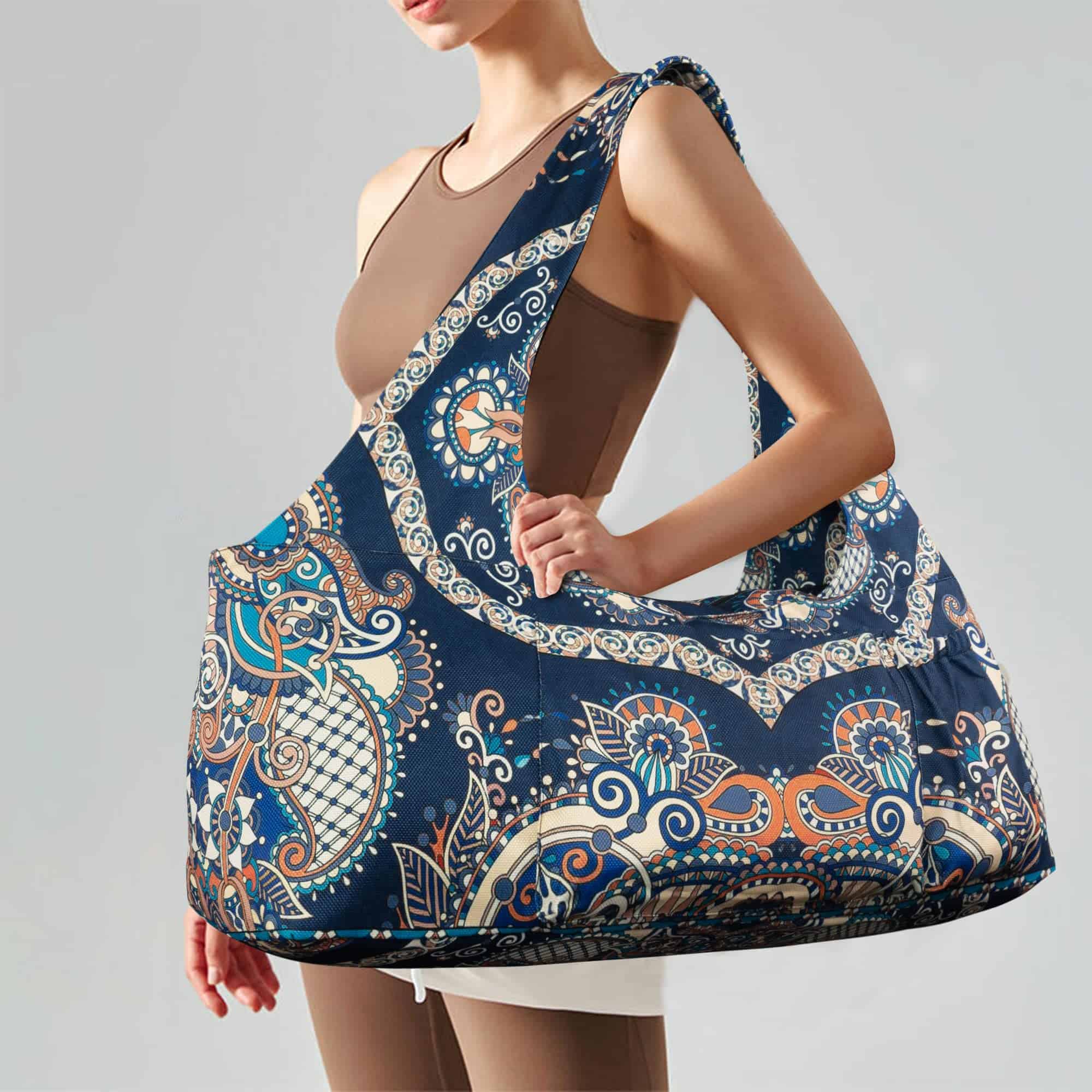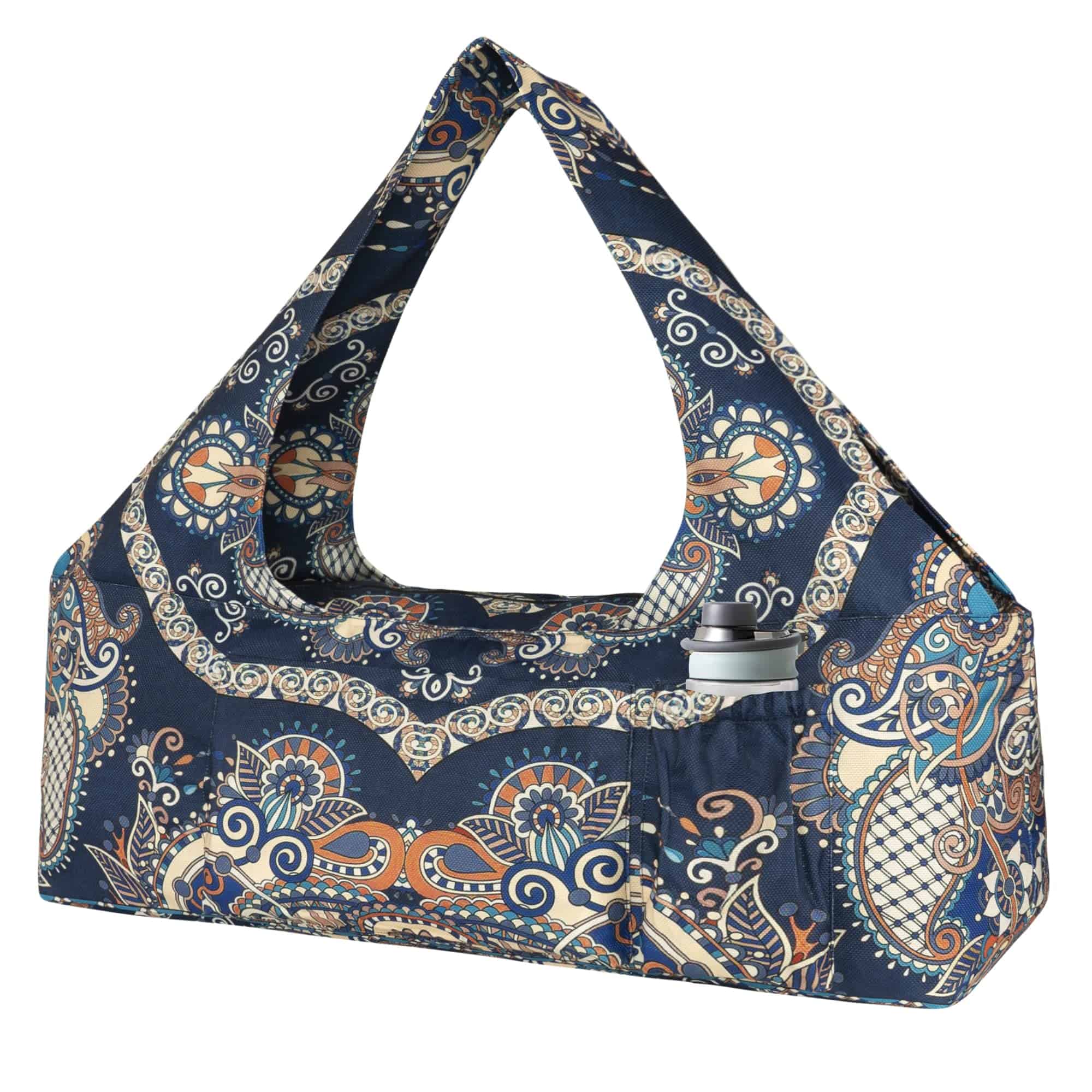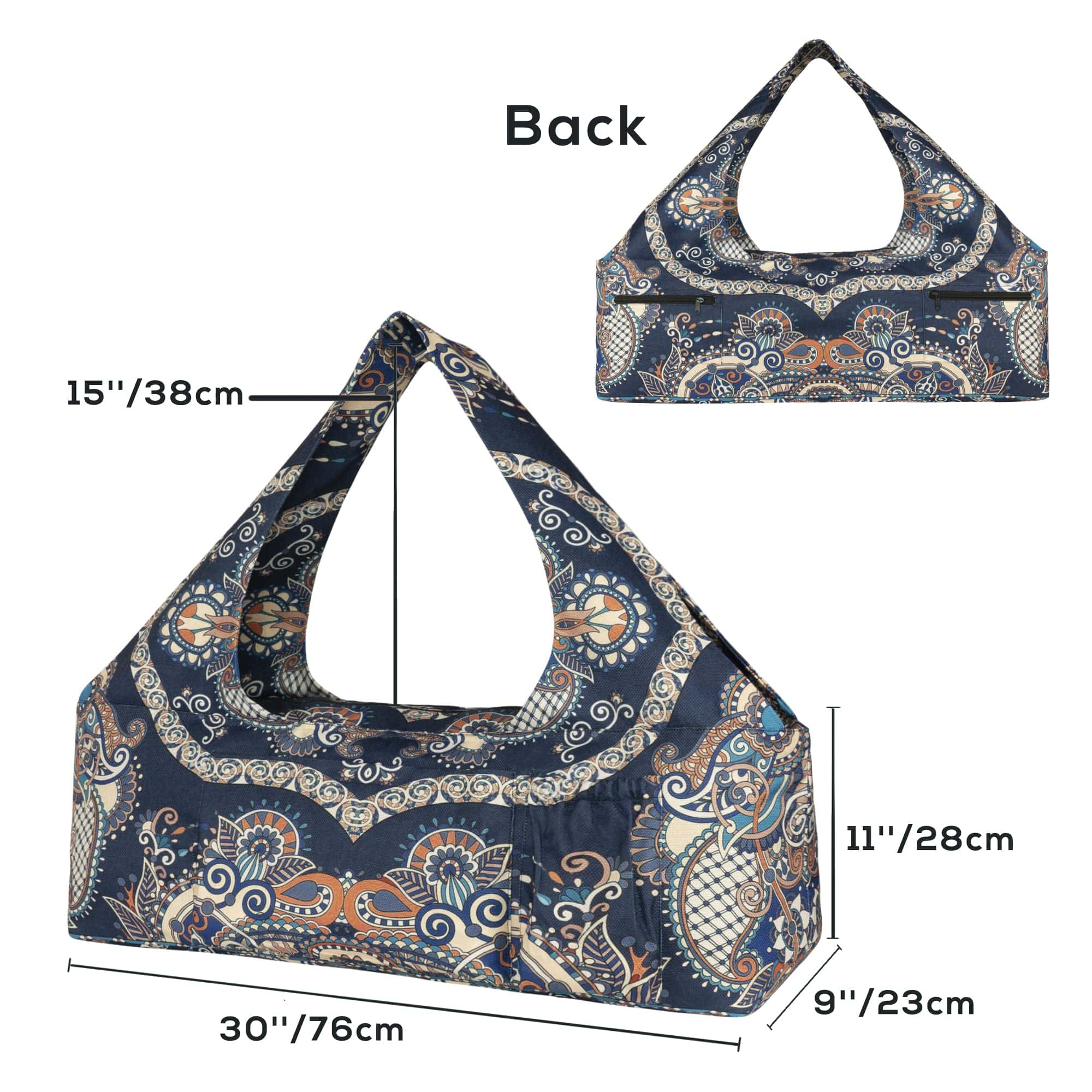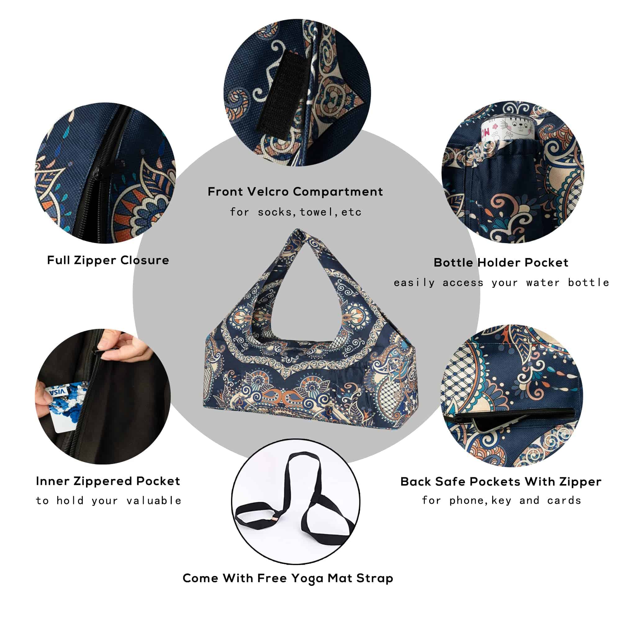 4. Diseñado específicamente para transportar tapetes de yoga de forma fácil, neutral en cuanto a género, en forma de bolso de correa de hombro. Varias formas de transporte, puedes llevar a mano o en el hombro nuestra bolsa de soporte de tapete de yoga. Las correas dobles anchas del hombro evitan cansar tus hombros. ¡No más molestias al empacar y llevar tu equipo de yoga de ida y vuelta al estudio. Simplemente deslízalo sobre tu hombro y ve! Combinado con finas costuras a mano, los diseños impresos de la bolsa añaden más color y valor a esta bolsa de yoga, vibrante y llamativa.