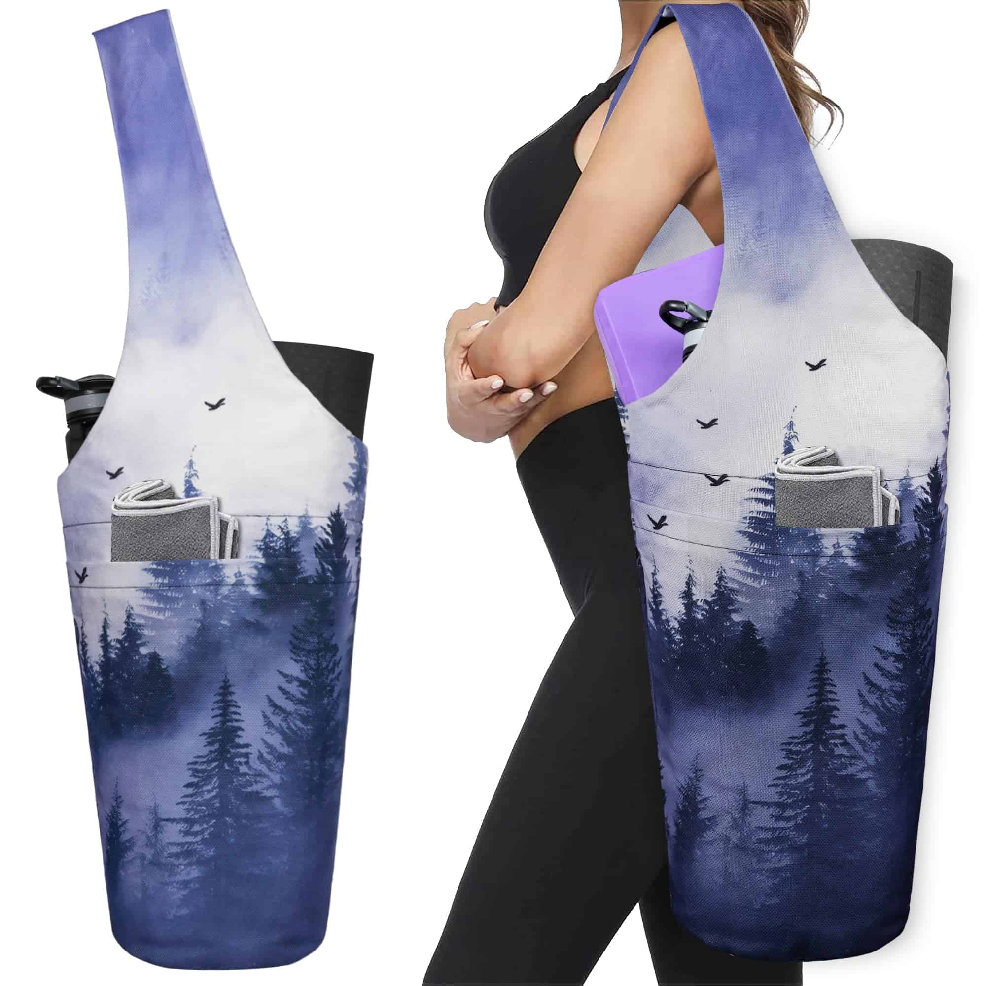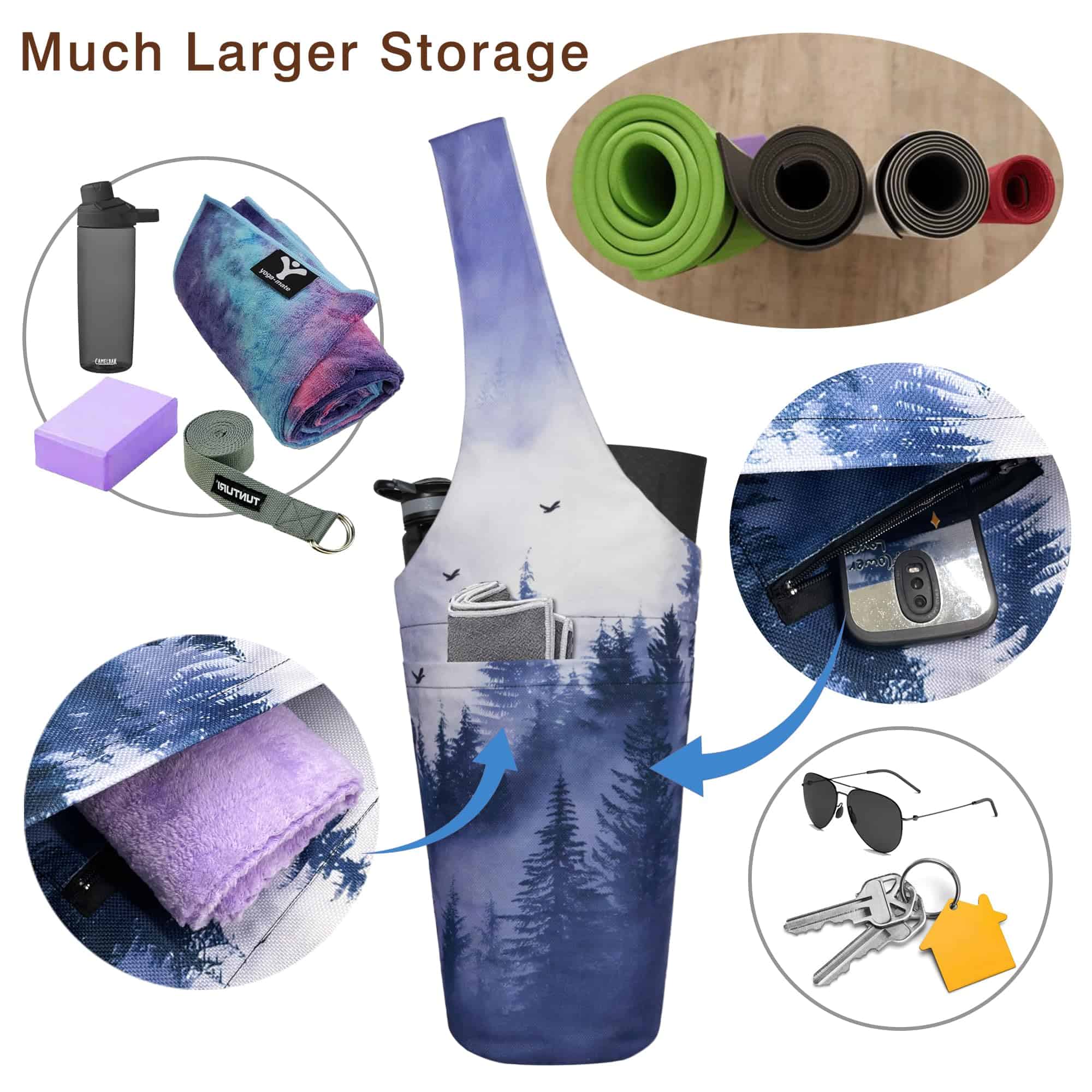 4. La bolsa para tapetes de yoga está hecha de materiales de alta calidad, sin cierres, sin hebillas y una correa para el hombro cómoda. Combinado con finos pespuntes a mano, los diseños impresos en la bolsa agregan más color y valor a este bolso de yoga, vibrante y llamativo. Con las necesidades genuinas de los yoguis en mente, esta bolsa para transportar tapetes de yoga aporta mucha comodidad a la organización diaria y almacenamiento de los accesorios de yoga, multiusos y práctica. Una bolsa de yoga todopoderosa.