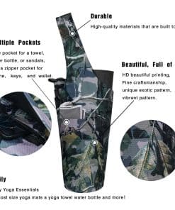 3. Estilo vibrante: La bolsa para tapete de yoga no solo es funcional, sino que también es vibrante y llamativa con sus diseños impresos y detalles de costura fina a mano. Aporta color y valor a tu equipo de yoga, haciéndolo más atractivo y personalizado.
