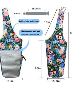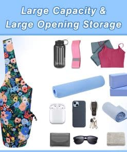 2. Diseñado específicamente para transportar mats de yoga de manera fácil: El tamaño de la bolsa de mat de yoga es de 37″x15.5″. Nuestra bolsa de yoga para mujeres no solo proporciona un espacio largo y conveniente para sostener un mat de yoga de tamaño completo, está diseñada con una correa incorporada para el mat de yoga que te permite asegurarlo en su lugar. Y puedes almacenar otros equipos y accesorios de yoga como tu bloque de yoga, correa de yoga, toallas de mat de yoga, etc. ¡Ya no más problemas para empacar y llevar tus equipos de yoga de ida y vuelta al estudio. Simplemente deslízalos sobre tu hombro y ve!.