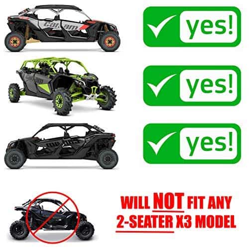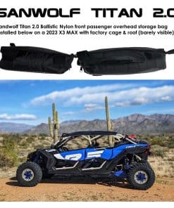 ACTUALIZADO PARA 2023 CON NYLON BALÍSTICO. La Bolsa Superior Sandwolf Titan Max Full Size fue diseñada específicamente para el modelo Can-Am Maverick X3 MAX de 4 plazas. A diferencia de la mayoría de las otras bolsas que fueron hechas para el modelo de 2 plazas, nuestra bolsa utiliza todo el espacio disponible entre los arcos de seguridad, brindándole una capacidad de almacenamiento mucho mayor que otras bolsas. Esta bolsa cuenta con un fondo rígido reforzado para reducir la flacidez, cremalleras resistentes de alta resistencia y fuertes cierres de gancho y lazo. Esta bolsa reforzada de compartimento dual tiene bolsillos laterales individuales con cremallera hacia adelante que permiten un fácil acceso para el conductor y el pasajero. Estos bolsillos son ideales para gafas de sol, teléfonos celulares y radios. Los compartimentos grandes pueden transportar elementos tan grandes como un computador portátil. El bolsillo frontal mide 17″ x 14″ x 4″. El bolsillo trasero mide 14″ x 14″ x 4″. Las dimensiones generales son 32″ x 14″ x 4″. La mayoría de las otras bolsas son aproximadamente la mitad del tamaño de esta bolsa. Los amplios accesorios de gancho y presilla aseguran que solo tenga que instalar esta bolsa una vez y el fondo reforzado evita que se hunda en su espacio de cabina. Esta bolsa se adapta a todos los X3 MAX de cuatro plazas con jaulas estándar, con o sin techo, años 2017, 2018, 2019, 2020, 2021, 2022 y 2023.