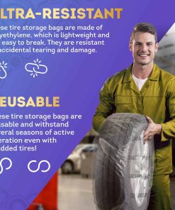 Las bolsas de plástico para llantas ofrecen una protección óptima para tus llantas de carro, bicicleta o motocicleta. Son ligeras, flexibles y resistentes a las rasgaduras, asegurando que tus llantas estén protegidas en todo momento. Esta bolsa de almacenamiento de llantas es la solución perfecta para tener un garaje organizado y proporciona una solución duradera, impermeable y sin olor para guardar las llantas. Con un diseño elegante y funcional, estas bolsas de almacenamiento de llantas son tanto estéticamente agradables como convenientes. Utiliza estas bolsas para proteger tus llantas del polvo y daños mecánicos, mejorando la durabilidad y rendimiento de los neumáticos.