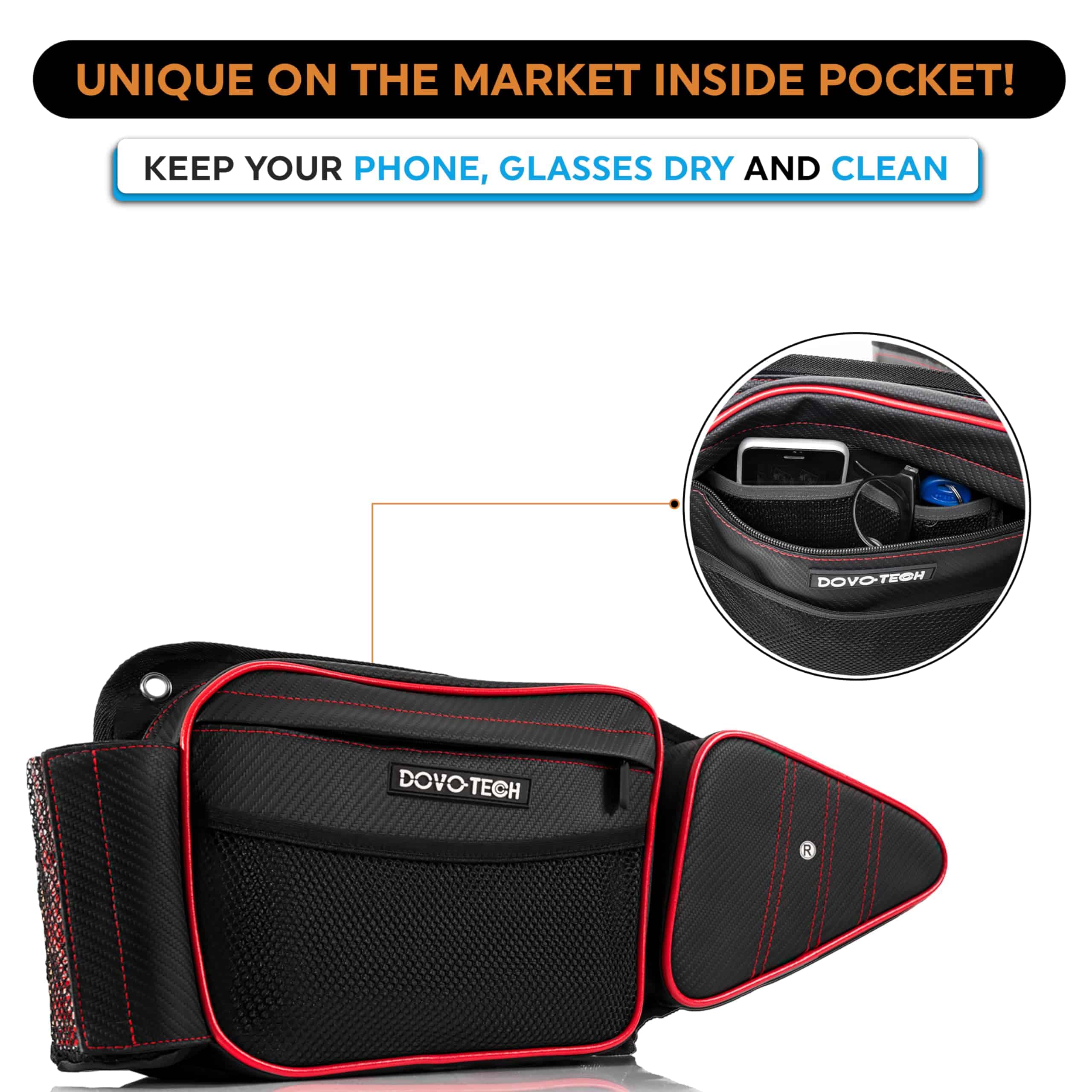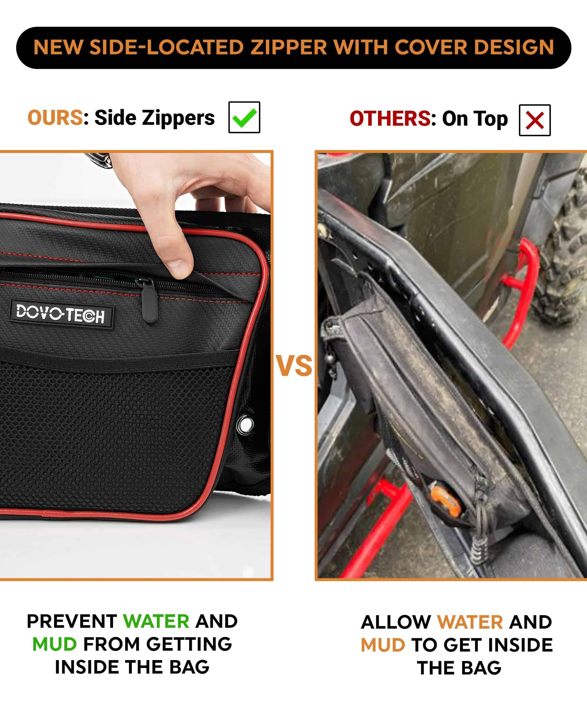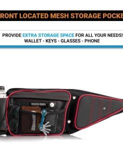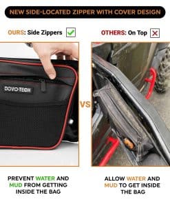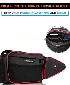 1. FÁCIL DE INSTALAR Su juego completo de 2 bolsas de puerta Rzr, con 2 bolsas de almacenamiento para la puerta delantera y lateral izquierda para guardar todos sus accesorios de rzr mientras pasea. Una de las mejores características de estos productos es la facilidad de instalación. Simplemente desenrosque un total de 6 nueces de pernos y sus accesorios de rzr 900 / utv bolsas y almacenamiento están listos para usarse en poco tiempo. 2. ESPACIO DE ALMACENAMIENTO ADICIONAL Las bolsas de puerta RZR xp 1000 brindan ese espacio de almacenamiento adicional que todo conductor necesita. Con los accesorios de rzr DOVOTECH, tiene suficiente espacio para guardar sus gafas, cargador, billetera, teléfono y llaves mientras accede fácilmente a ellos. Nunca pierda o extravíe sus pertenencias con estas bolsas de almacenamiento rzr definitivas. Compatible con RZR XP 1000 turbo 900XC S 900 de 2014 a 2023. 3. DISEÑO DE CIERRE DE CREMALLERA NUEVO LADO MIENTRAS que otras bolsas de puerta rzr tienen cierres de cremallera débiles que se rompen después de unos pocos paseos y no son resistentes al agua, DOVOTECH ha diseñado una nueva cremallera lateral para evitar que el barro y el agua de lluvia caigan directamente dentro las bolsas de almacenamiento mientras se mantiene siempre la bolsa interior seca y limpia. 4. PROTECCIÓN DE RODILLA DE ESPONJA MEJORADA Proteja sus rodillas de golpear las puertas de metal gracias a la protección especial de esponja para las 2 bolsas de almacenamiento de rzr 1000. Disfrute al máximo de cada paseo y también benefíciese de un espacio de almacenamiento seguro para sus objetos de valor. NO SE AJUSTA: Modelo RZR 500 (50 pulgadas de ancho), Modelos de sendero RZR 900 ni Polaris General / Rangers. 5. DISEÑO ESPECIAL DE BOLSILLO INTERIOR Las bolsas de puerta Dovotech vienen con un bolsillo interior de malla especial para guardar sus gafas y teléfono manteniéndolos secos y limpios mientras conduce su rzr 1000 turbo en el sendero. Las bolsas cuentan con un bolsillo oculto para botellas de agua para olvidarse de mantener sus botellas en el asiento medio de su rzr.