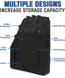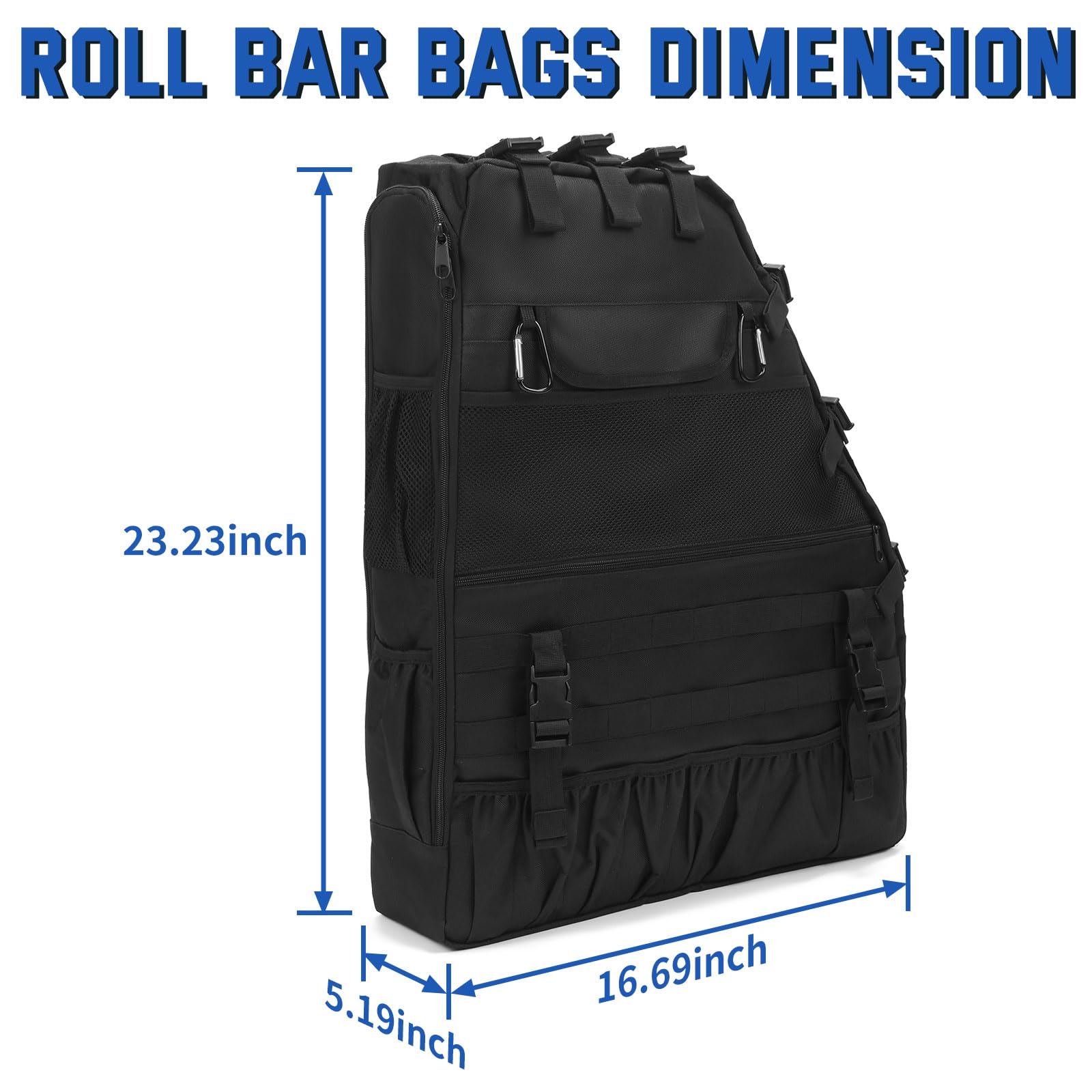 4. DISEÑO ÚNICO: Bolsas de Almacenamiento para Roll Bar con anillas, mosquetones, cabezal de cremallera, hebilla elástica, banda de goma, bolsa de malla, multi-bolsillos para un almacenamiento máximo, proporciona un buen lugar para el almacenamiento y organización de varios artículos, como juegos de enchufes, cinta, destornilladores, linterna y equipo todo terreno, kits de herramientas, un buen compañero para ir de senderismo, camping, viajar. Hace que tu wrangler luzca más limpio y ordenado, y te ayuda a encontrar fácilmente algo que buscas.