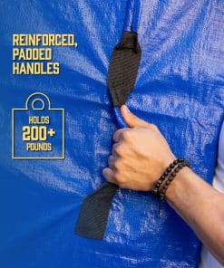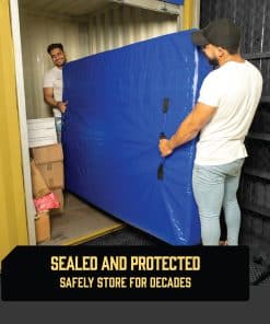 2. Construcción duradera – Fabricada con una resistente lona de polietileno de 150G, esta bolsa está diseñada para durar años de uso y abuso sin rasgarse, desvanecerse o desintegrarse incluso con un colchón pesado en su interior. A diferencia de la mayoría de las fundas de colchón transparentes, esta es de color azul opaco para proteger tu privacidad y ocultar el colchón a simple vista.