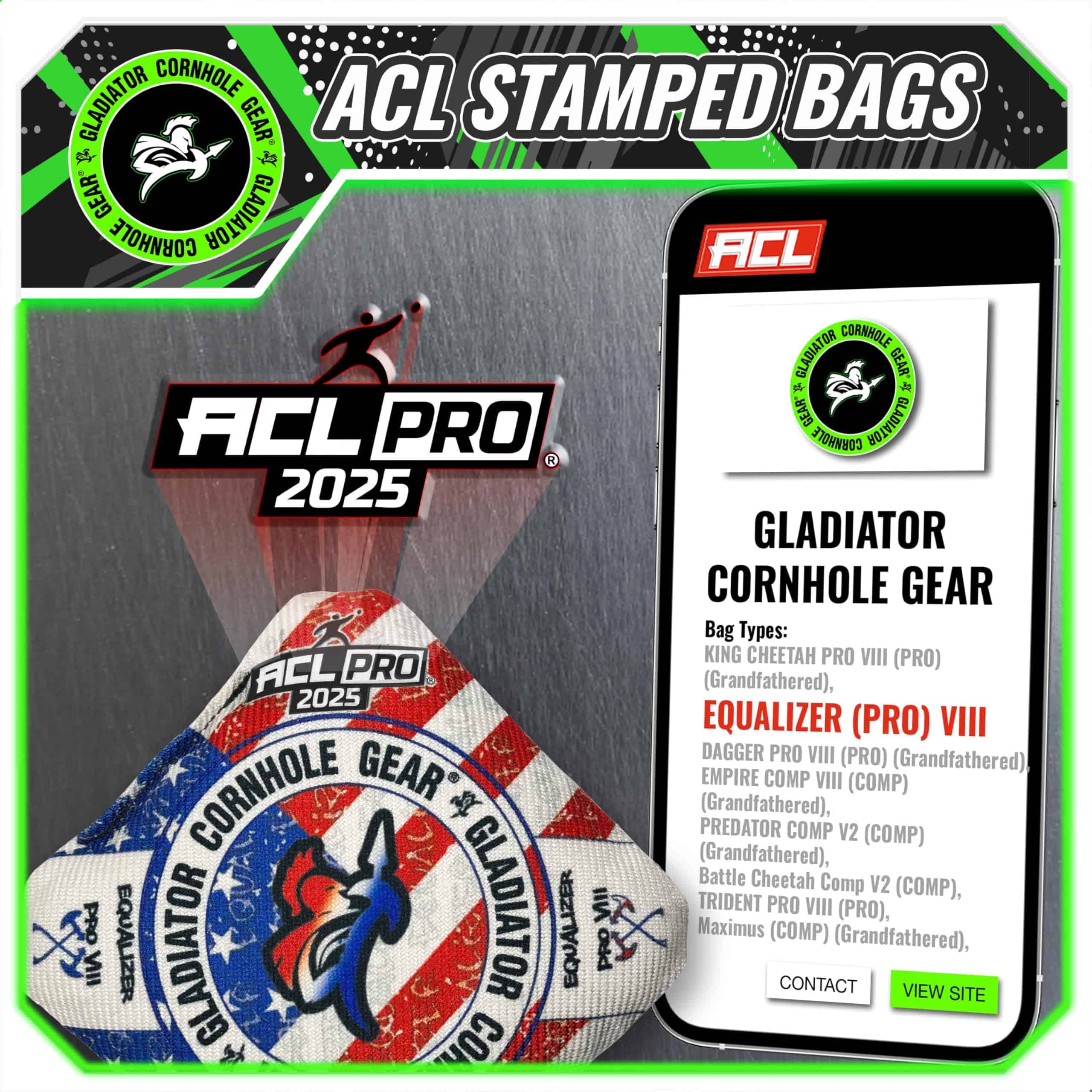 3. APROBADO POR LA LIGA AMERICANA DE CORNHOLE: Todas las Series de Bolsas Gladiator están Oficialmente Marcadas y Certificadas por la ACL, como Pro, Comp o Rec. No te Dejes Engañar por Otros Sitios Web que Hacen Falsas Afirmaciones, ¡Busca el Sello ACL!