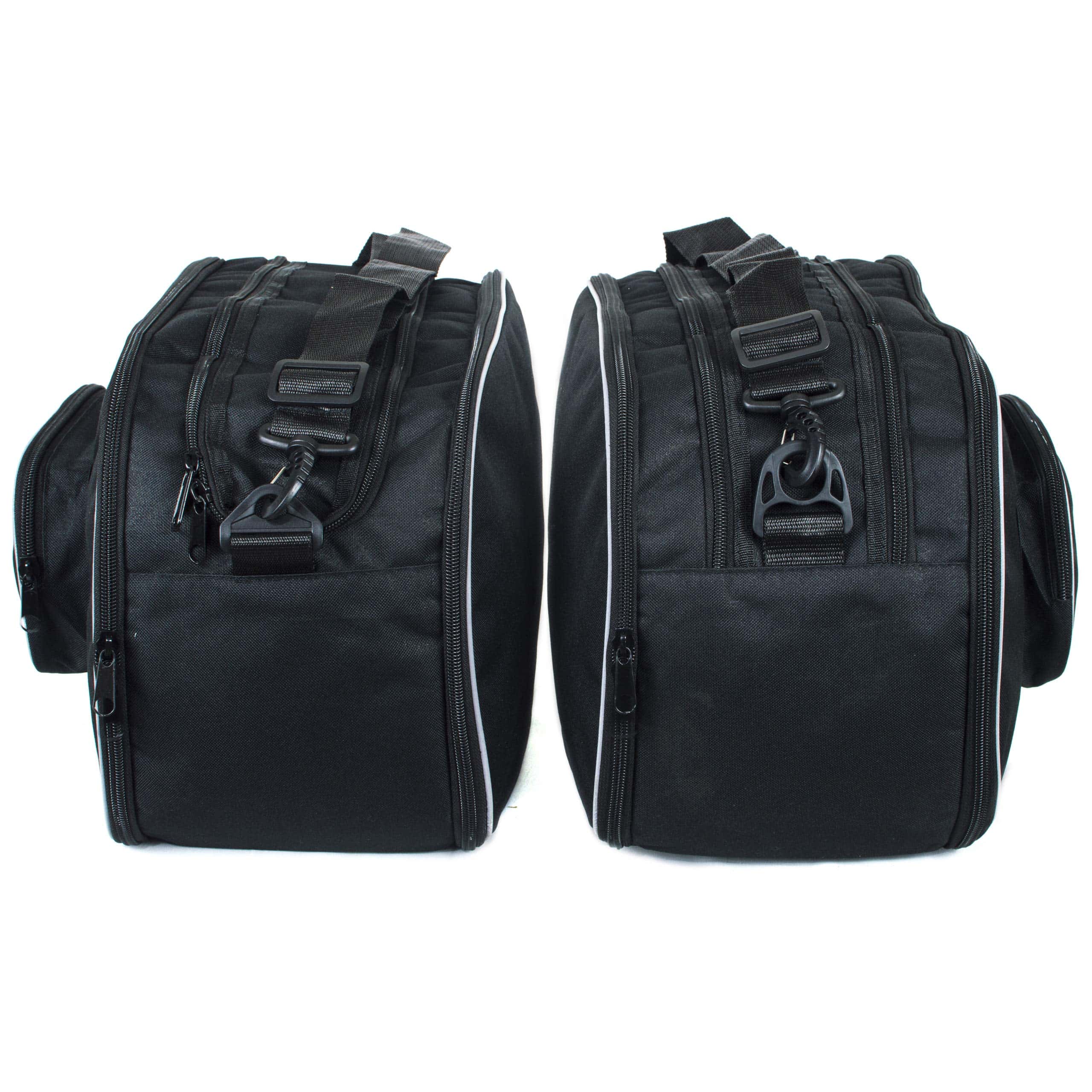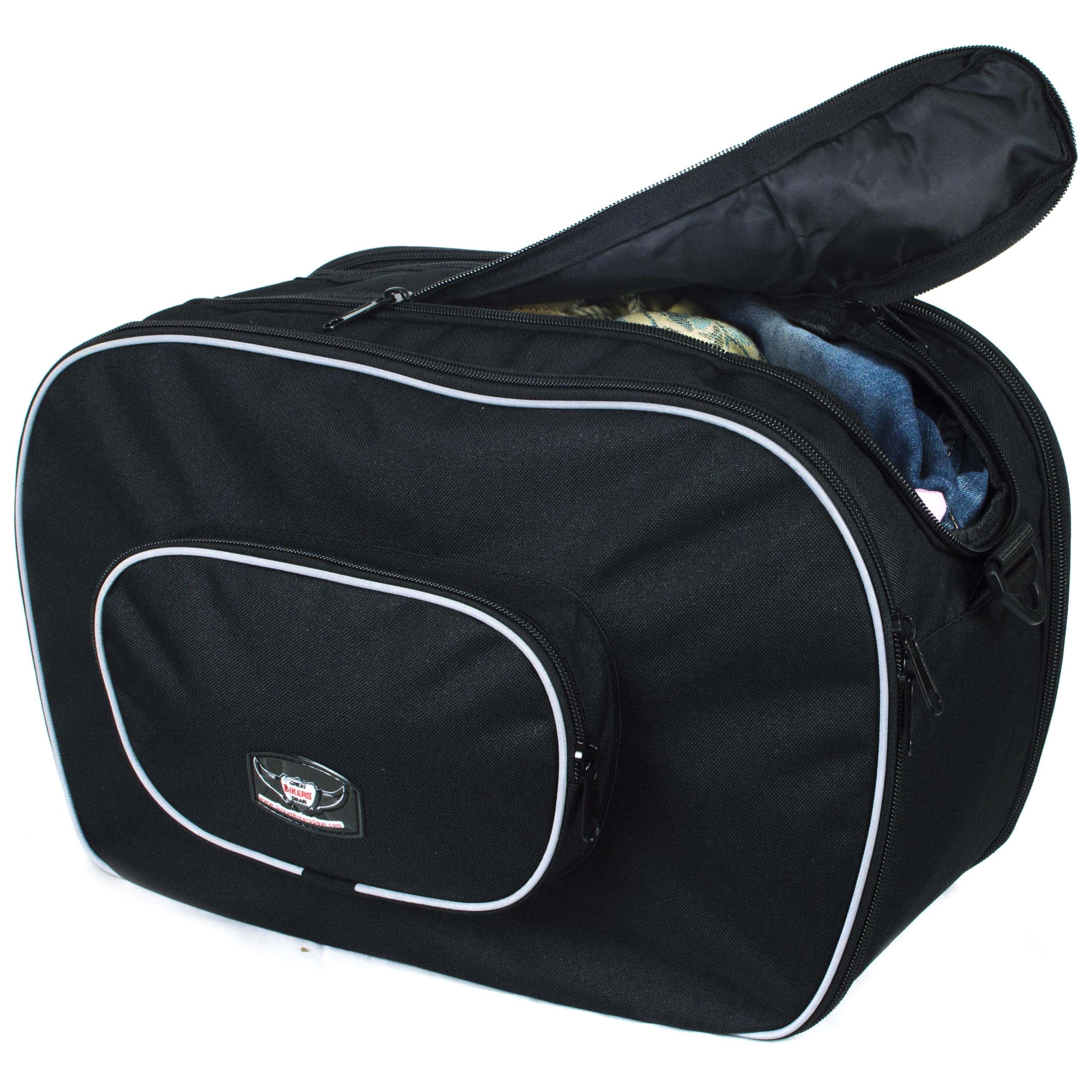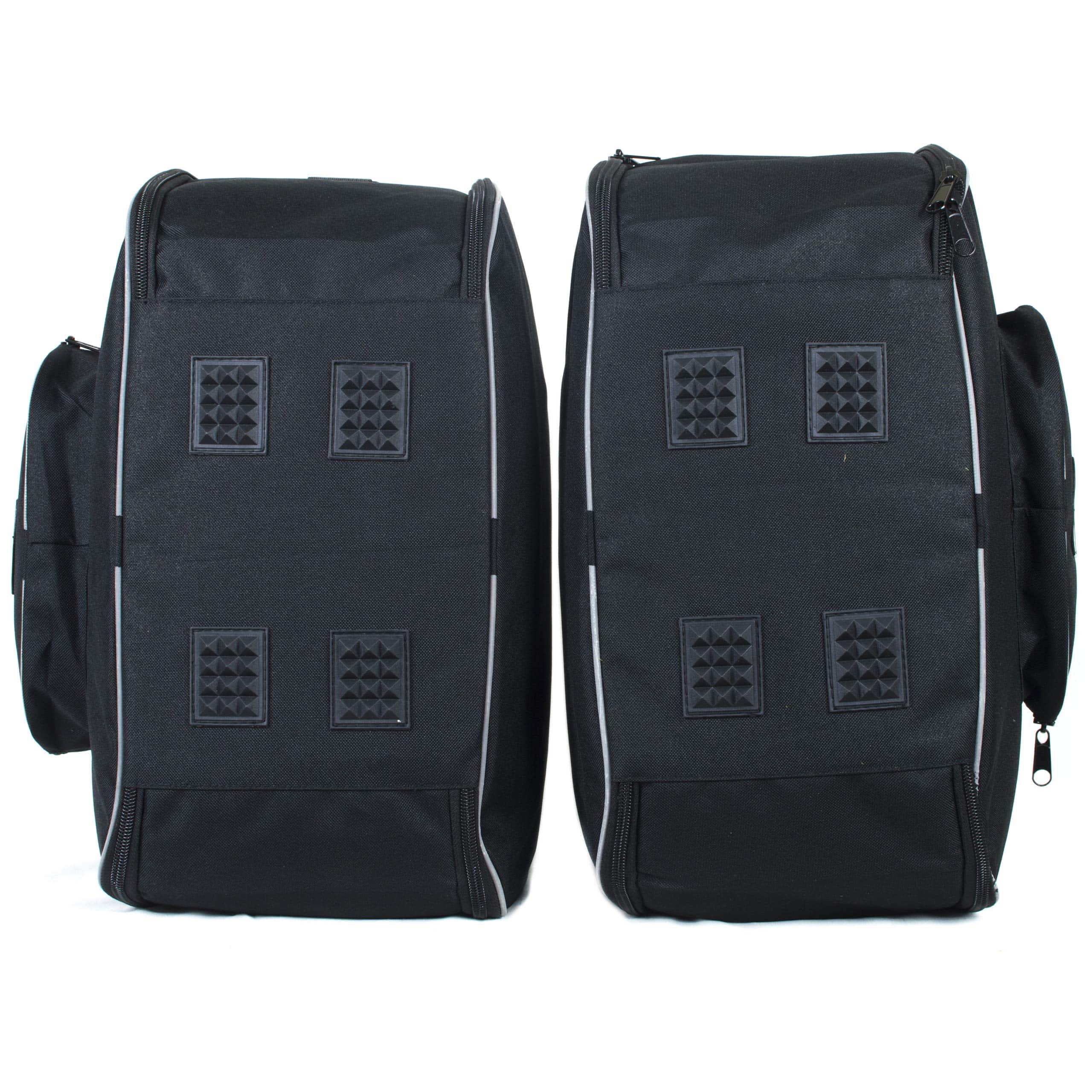 Las bolsas de equipaje de GBG son unas de las mejores disponibles en el mercado. Altamente resistentes al agua y diseñadas para caber dentro de las panniers/casos duros y ser removidas instantáneamente para llevar tu equipaje contigo. Hechas de material de cordura muy resistente y duradero. El recubrimiento exterior está hecho de piping fuerte, que tiene la capacidad de reflejar en la noche y ayudar a ser visto. Pesan muy poco, son duraderas y prácticas para tus viajes. Cierres de alta calidad YKK y la mayoría se abren como una maleta para facilitar el empaque. Cuentan con correa para el hombro y asas de transporte, lo que facilita mucho llevarlas. Se pueden plegar planas para guardarlas y usarlas en el próximo viaje. Cada bolsa tiene patas inferiores por si necesitas ponerlas en el suelo. La mayoría de las bolsas tienen un bolsillo exterior para poner documentos importantes como pasaportes, etc.