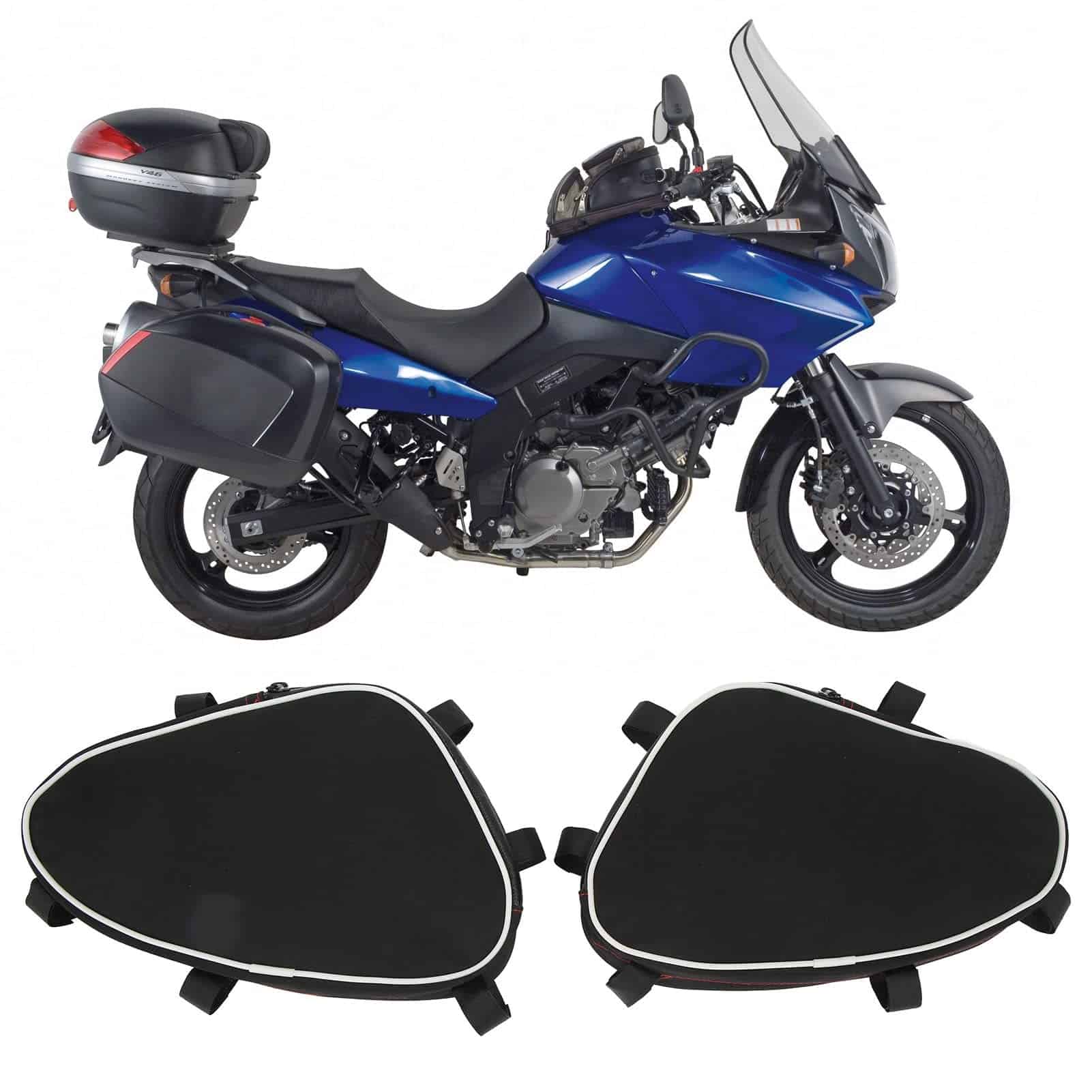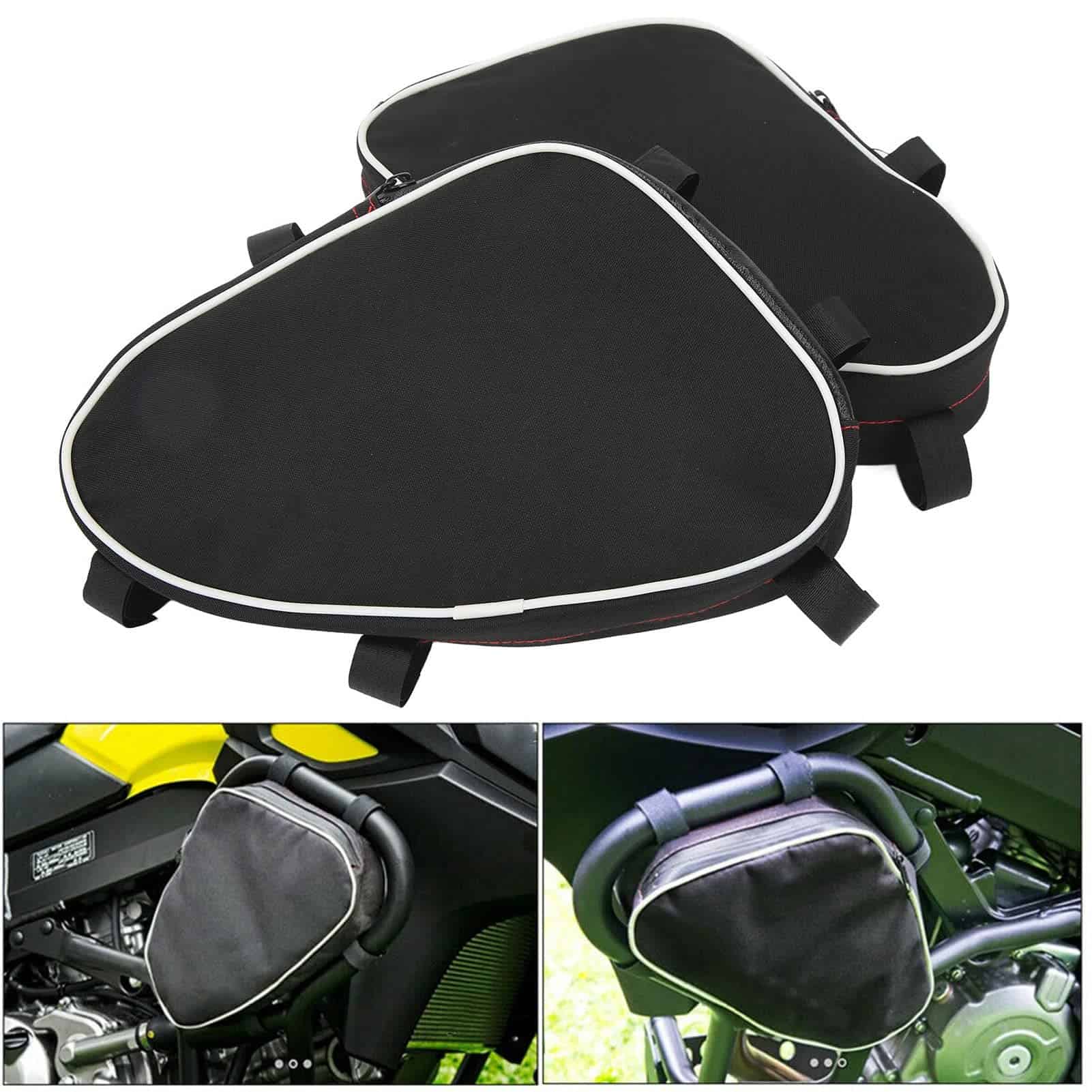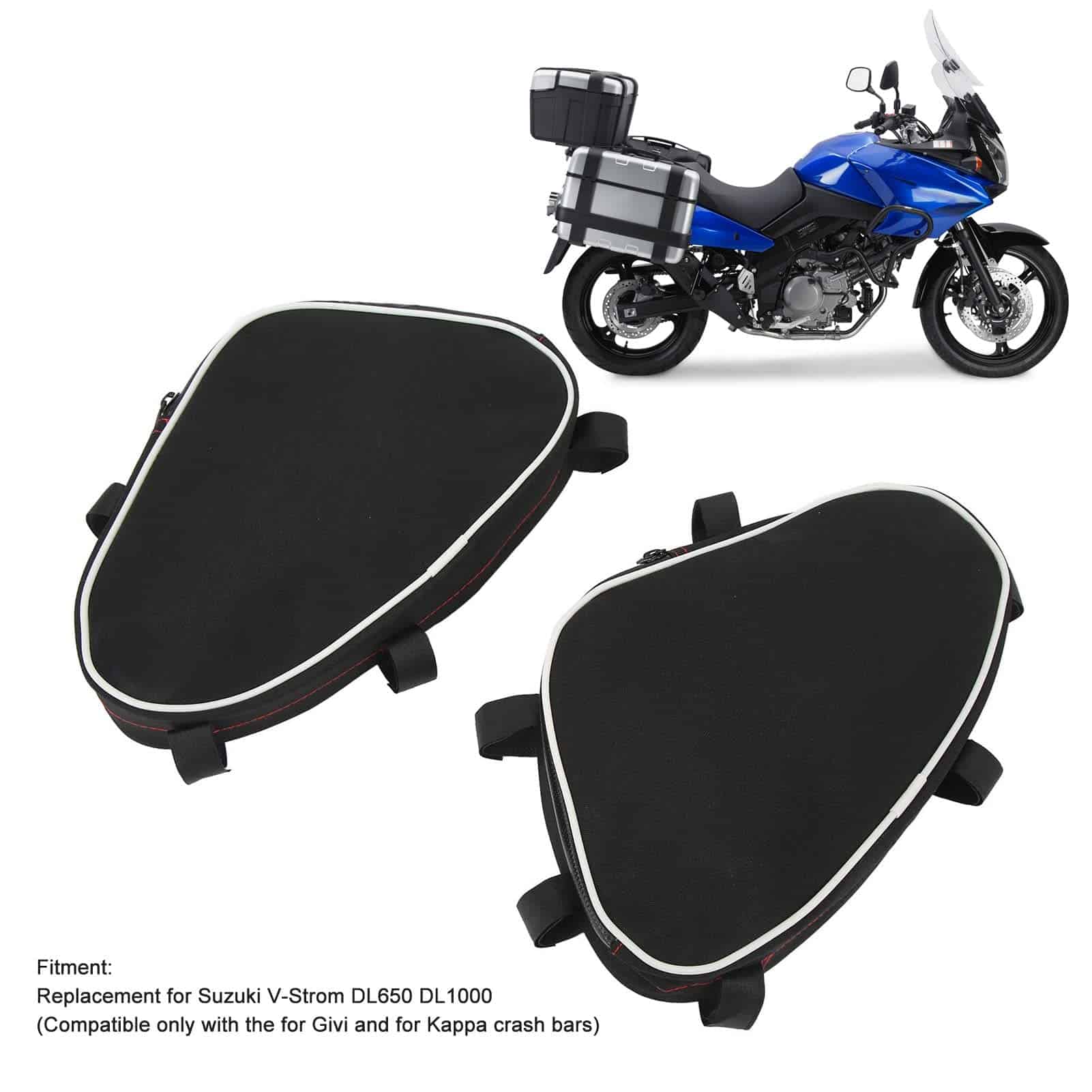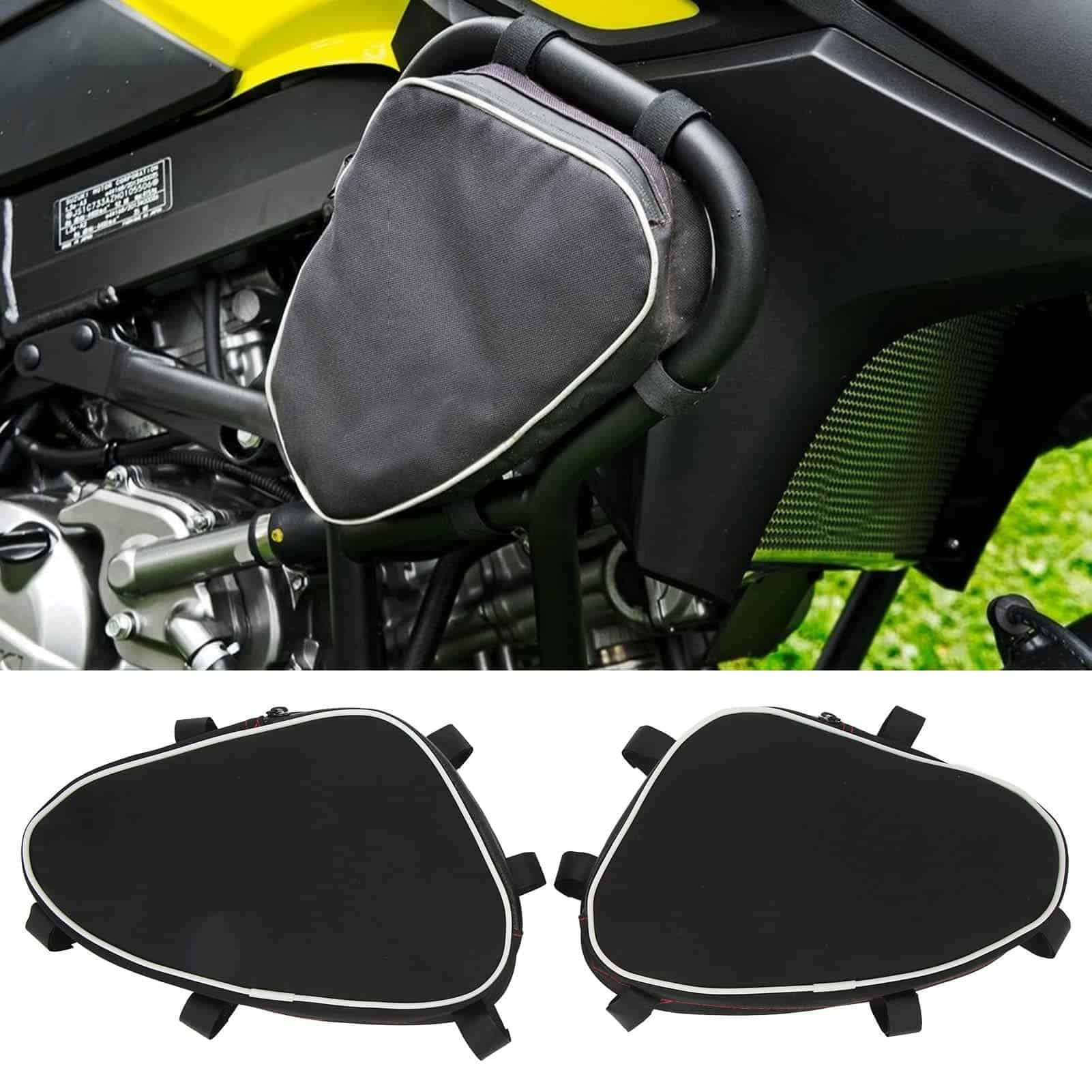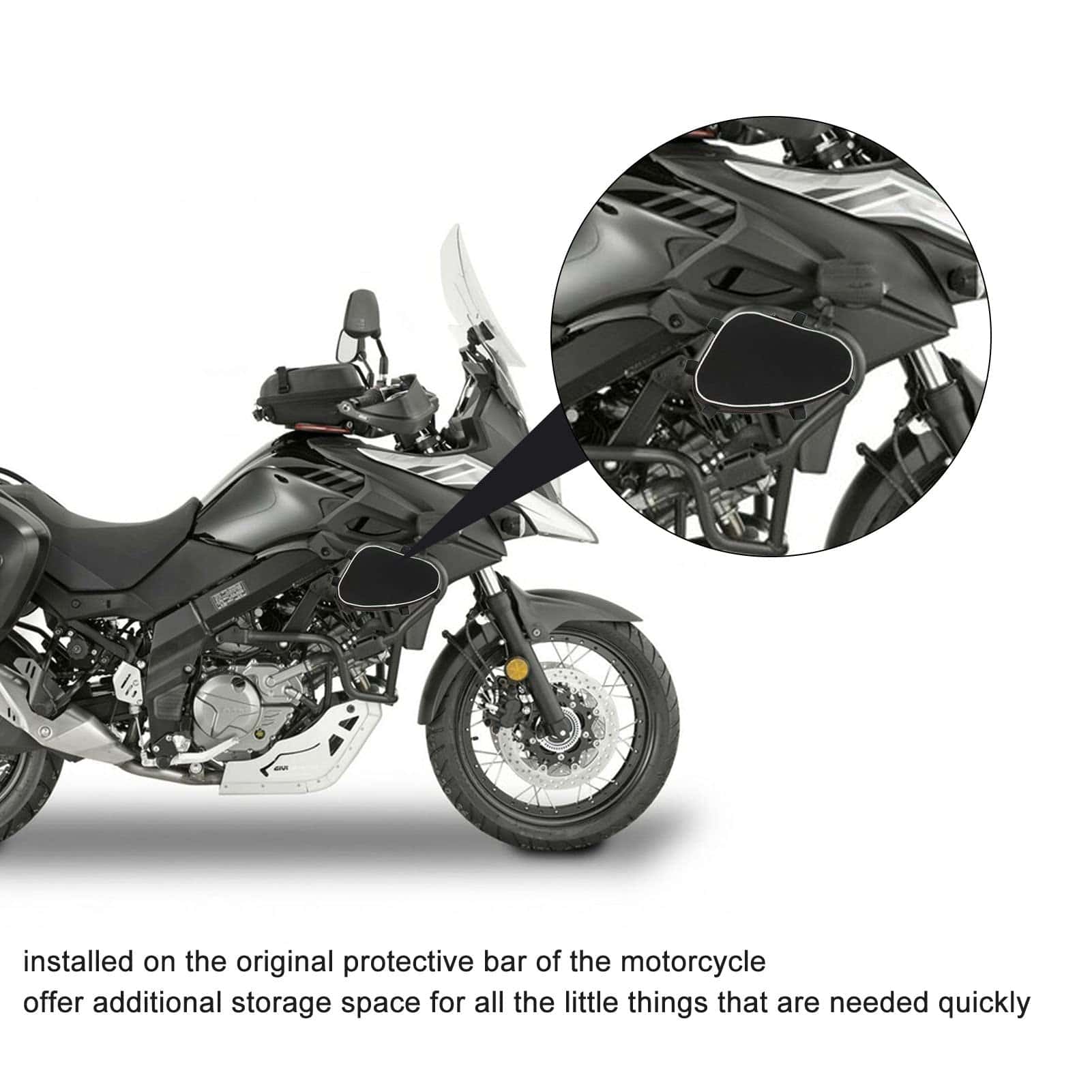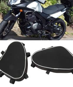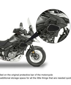 Actualice la capacidad de almacenamiento de su motocicleta con nuestras duraderas bolsas de barra de protección. Diseñadas para adaptarse a los modelos DL650 y DL1000, estas bolsas se sujetan de forma segura al marco de su motocicleta utilizando sujetadores, ofreciendo acceso conveniente a elementos esenciales como herramientas, gafas de sol o guantes de repuesto. Fabricadas en resistente tela textil, son ligeras pero resistentes, asegurando un uso duradero. Cada bolsa cuenta con un compartimento único y espacioso, perfecto para organizar sus pertenencias. Miden 7.5 x 5.5 x 2 pulgadas (19 x 14 x 5 cm) y pesan 0.231 kg cada una. Fáciles de instalar y quitar, estas bolsas son una adición ideal al equipo de cualquier entusiasta de las motocicletas.