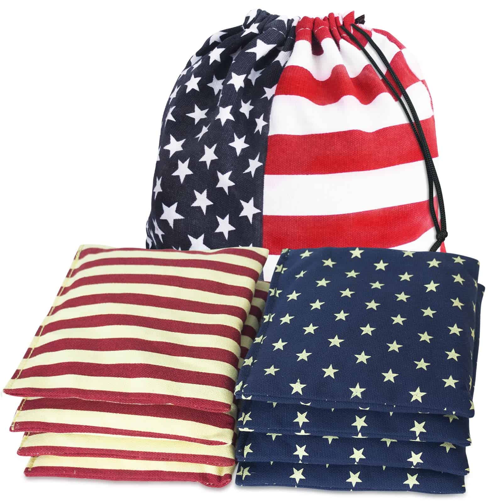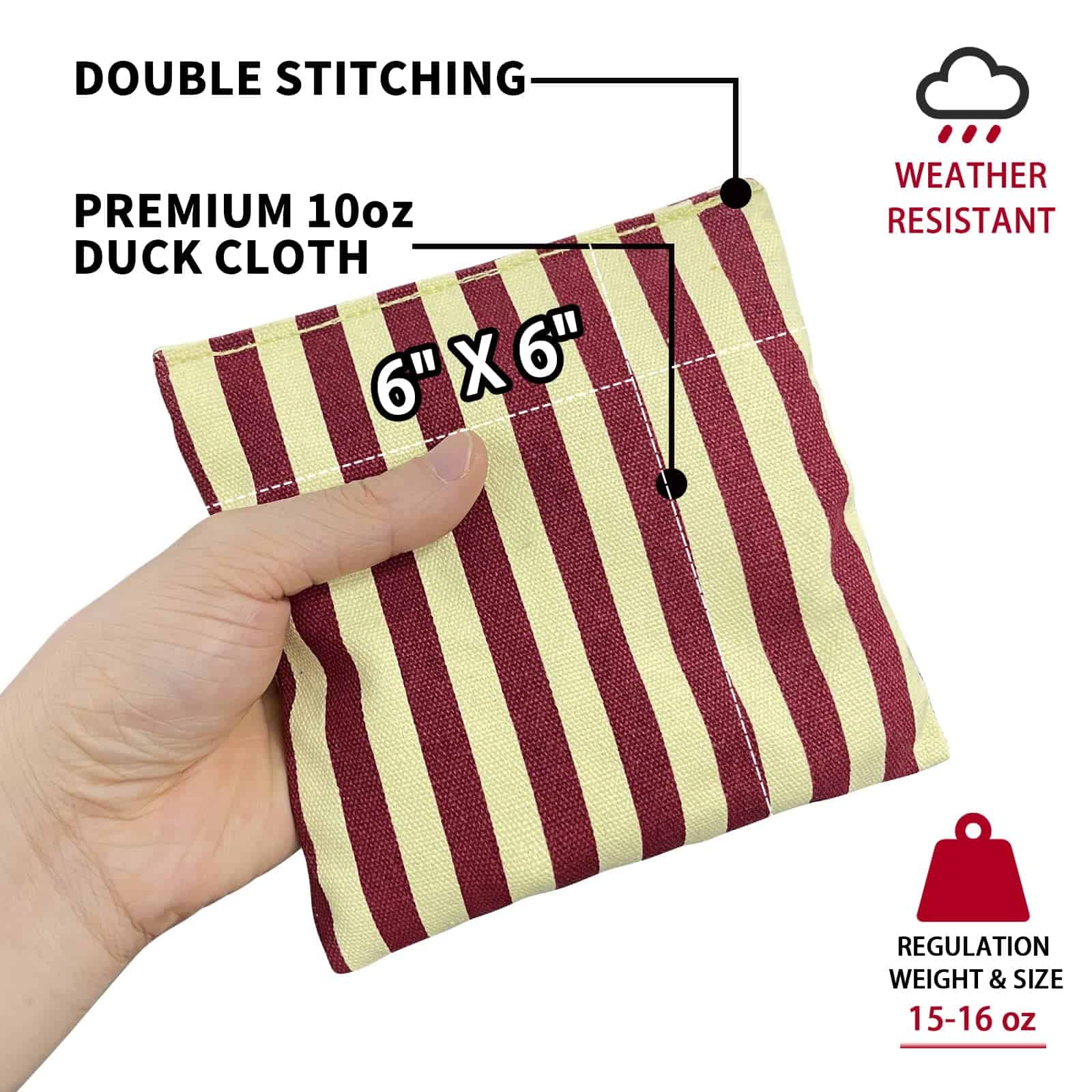 1. TAMAÑO Y PESO REGULACIÓN: Juego profesional de bolsas de maíz para cornhole de 8 unidades, cada una mide 6″x6″ y pesa de 14 a 16 onzas, que es de tamaño y peso tradicional, ofreciéndote un toque cómodo y un agarre firme. Viene con una bolsa GRATIS para un almacenamiento y transporte fácil.