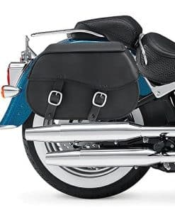 Para ser las mejores bolsas fáciles de quitar que encontrarás por el precio, las Bolsas de Sillín de Moto de Tiro Grande de Nomad son tan resistentes como vienen. Hechas de cuero Viking de alta calidad y reforzadas con plástico duradero, las bolsas de sillín están construidas para durar mucho tiempo. Las bolsas son espaciosas con un bolsillo de malla interna para una mejor organización. Las bolsas lucen tachuelas de acero inoxidable a prueba de herrumbre para darle a tu moto el aspecto clásico de crucero.