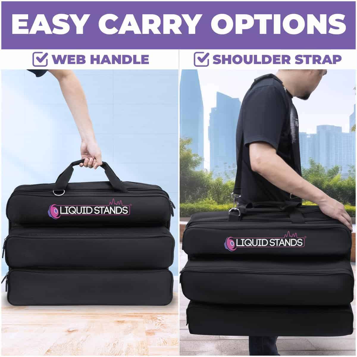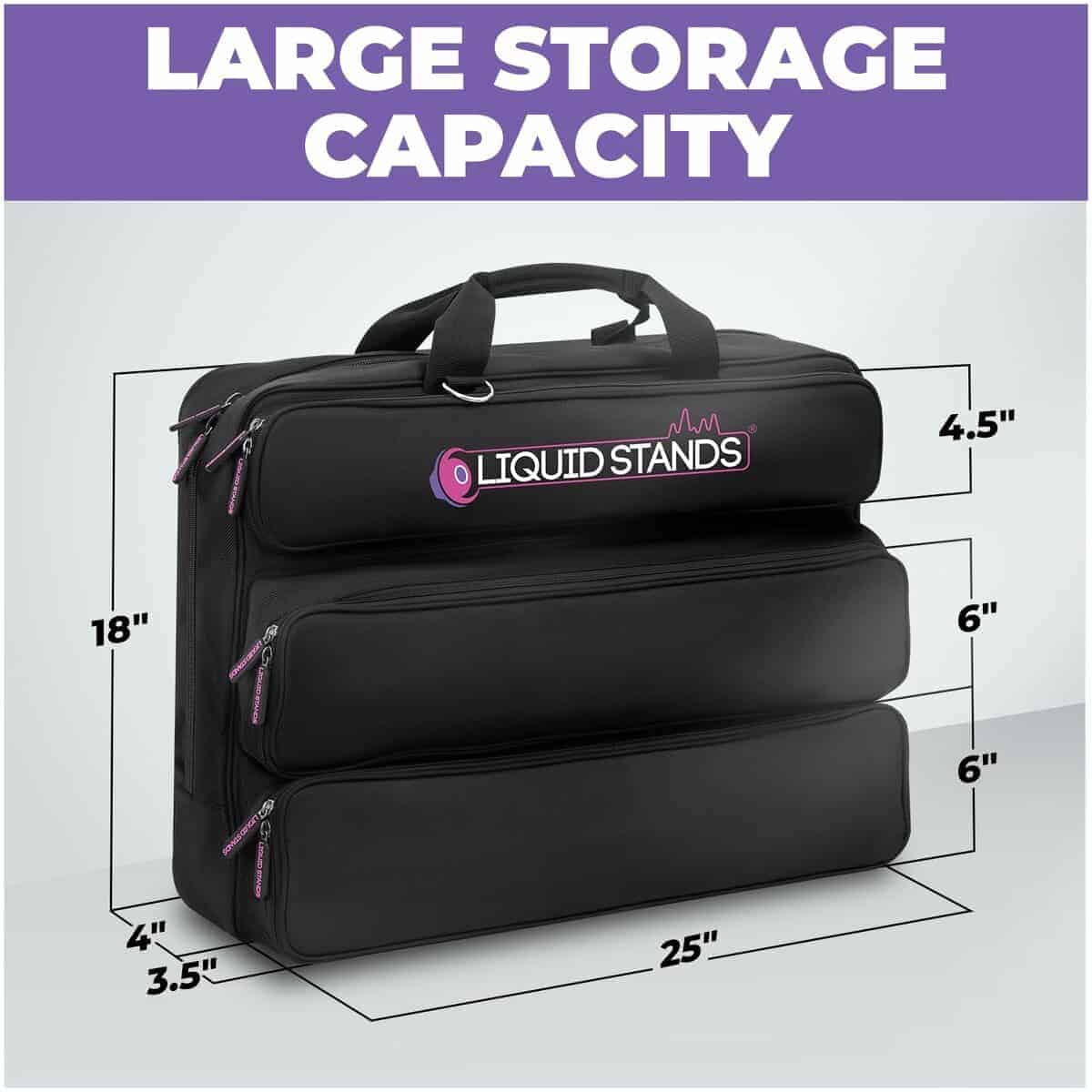 5. Uso versátil: Ideal para músicos, estudios y montajes de eventos, ofreciendo un almacenamiento confiable para productos de Liquid Stands y equipos similares.