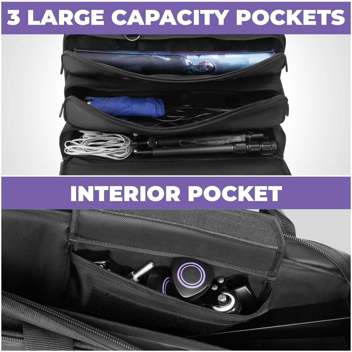 3. Espacioso y portátil: Cuenta con un amplio espacio de 24 x 18″ y un interior espacioso para acomodar soportes y accesorios. También tiene un diseño ligero, asa de correas tejidas robustas y correa para el hombro para un transporte fácil.