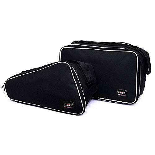 Great Bikers Gear ofrece la mejor calidad de alforjas KTM 1290 Super Adventure. Los forros interiores de las alforjas tienen un aspecto perfecto, un diseño tentador y la capacidad de llevar suficiente peso. Se utiliza ribete reflectante que no solo se ve bien, sino que también mejora su visibilidad en la oscuridad. Con un precio muy razonable en comparación con otras marcas del mercado. Se utiliza material de poliéster pesado 600 x 600 Denier laminado con PVC para hacer estas bolsas duraderas y resistentes. Se utiliza hilo de nylon de alta resistencia para el cosido para evitar que la bolsa se rompa cuando está completamente llena. El ribete fuerte mantiene las bolsas para las alforjas en forma para un ajuste perfecto en las alforjas y aprovechar al máximo el espacio sin ser vulnerable a romperse. Empaquetar tus cosas en estas bolsas para alforjas es muy simple y suave, ya que estas bolsas se abren ampliamente como una maleta. Las cremalleras de alta calidad añaden suavidad y no se atascasn al abrir y cerrar la bolsa. Estas bolsas son muy prácticas y ligeras, por lo que puedes llevarlas a donde vayas. Se incluyen asas de transporte y correa para el hombro que hacen que sea fácil de llevarlas a cualquier lugar. Se agrega un bolsillo exterior adicional en el diseño para que puedas colocar mapas y documentos de viaje.