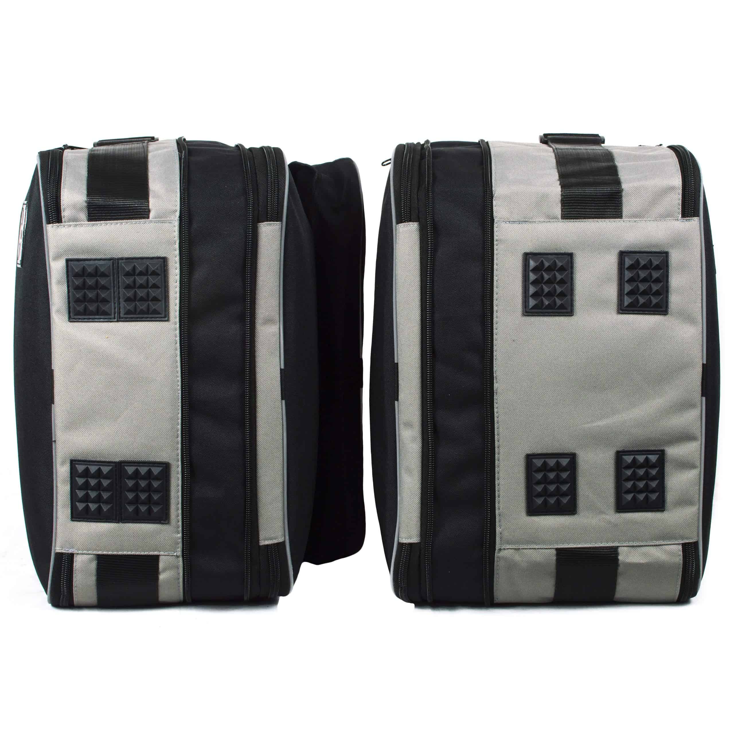 Las bolsas de alforja y equipaje GBG son unas de las mejores disponibles en el mercado. Las bolsas son altamente resistentes al agua y están diseñadas para adaptarse dentro de las alforjas/cajas duras y pueden ser retiradas al instante para llevar tu equipaje contigo a tu habitación de hotel, hogar, oficina, etc. Las bolsas están hechas de material cordura, que es muy resistente y tiene una larga vida útil. El revestimiento exterior está hecho de un fuerte ribete, que tiene la capacidad de reflejar en la noche y ayudar a ser visto y agregar protección a tu seguridad. El ribete resistente también ayuda a mantener las bolsas en forma mientras se colocan en la superficie. Las bolsas son muy duraderas, ligeras y prácticas cuando estás de viaje. Se utilizan cremalleras de alta calidad YKK en las bolsas y la mayoría de las bolsas se abren como una maleta, lo que facilita el embalaje. Las bolsas que se ajustan a los equipajes de aluminio también se pueden acceder mientras están en las alforjas/cajas. Las bolsas también cuentan con correa para el hombro y asas de transporte, lo que facilita mucho llevarlas. Las bolsas se pueden plegar fácilmente para almacenamiento y pueden ser usadas para el próximo viaje. Cada bolsa tiene remaches inferiores en caso de que necesites colocarlas en la carretera o superficie. La mayoría de las bolsas tienen un bolsillo exterior para poner tus documentos importantes como el pasaporte, etc.