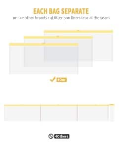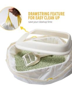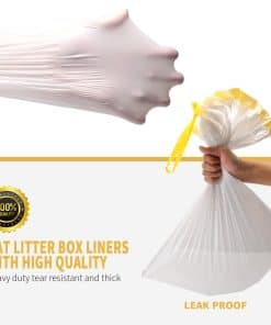 Bolsas para caja de arena para gatos KONE. Más conveniente para limpiar la caja de arena de tu gato con bolsas para caja de arena con asas con cordón de KONE, ahorra tiempo de limpieza. Protege tu caja de arena y pisos de la arena y deshazte fácilmente de la arena cuando estés listo. Las bolsas proporcionan una superficie sedosa y un estilo contemporáneo elegante. Lo mejor de todo, están hechas de un material extra grueso, menos propenso a perforaciones o desgarros. Mantén limpia la casa para tu gato. Recoge los desechos diariamente usando una pala curva entrelazada, desecha los desechos al menos una vez al día. Si no lo recuerdas, tu nariz te lo hará saber y también el gato. Reemplaza las bolsas según tus hábitos, al menos una vez a la semana, las patas limpias son patas felices. El control de la arena es parte de la vida cotidiana cuando vives con un gato. Las bolsas para caja de arena para gatos KONE son adecuadas para una caja de arena de base amplia para contener la dispersión de arena y ayudar a mantener los pisos libres de arena, también se pueden orientar en una variedad de posiciones en el hogar, permitiendo un acceso cómodo para los gatos desde cualquier lado. Estamos enfocados en una forma sanitaria de desechar los desechos de mascotas. Te deseamos a ti y a tu adorable gato un tiempo feliz. CÓMO USARLO PASO 1: Saca la bolsa de arena para gatos y extiéndela. PASO 2: Coloca el fondo de la bolsa en la caja y aplánala. PASO 3: Envuelve el borde sobrante de la bolsa de arena alrededor de la caja. PASO 4: Vierte la cantidad adecuada de arena para gatos. PASO 5: Este es el baño perfecto que atraerá a los gatos. PASO 6: Cuando esté listo para cambiarlo, simplemente levanta y ata la bolsa para desecharla adecuadamente. CARACTERÍSTICA PRINCIPAL Función de cordón para una fácil limpieza Fuerte y duradero, resistente a los desgarros Cada bolsa es separada.
