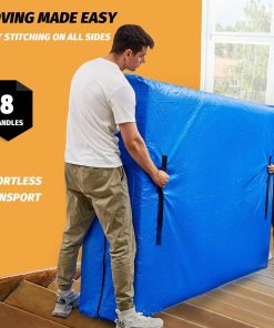 Con 8 robustas asas y un diseño de doble cremallera extra grande, nuestras bolsas son fáciles de transportar y permiten una instalación y extracción sencilla. El diseño impermeable y resistente a la abrasión protege su colchón de la humedad y el agua, manteniéndolo seco y protegido. El color azul opaco garantiza su privacidad al ocultar el contenido. Perfectas para almacenamiento en cobertizos, áticos y sótanos.