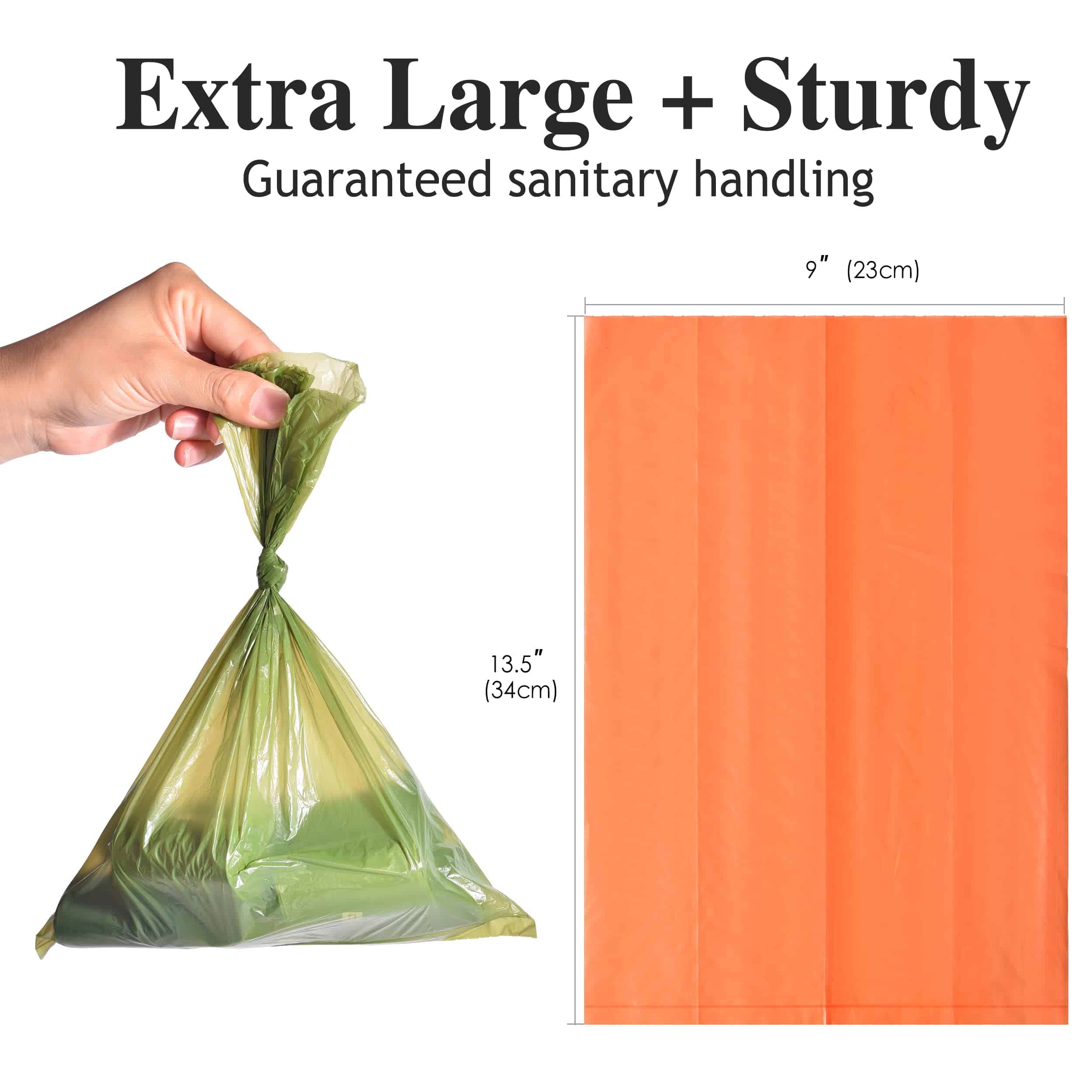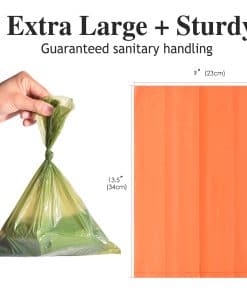 1. EXTRA GRANDES – Bolsas para excremento muy grandes de 13.5 x 9 pulgadas de tamaño, más grandes que la mayoría de las bolsas para desechos de perros en el mercado, garantizan un nudo adecuado para contener limpiamente los desechos y minimizar el olor al recoger las deposiciones de perros pequeños a grandes y al recoger los desechos de gato en la caja de arena.