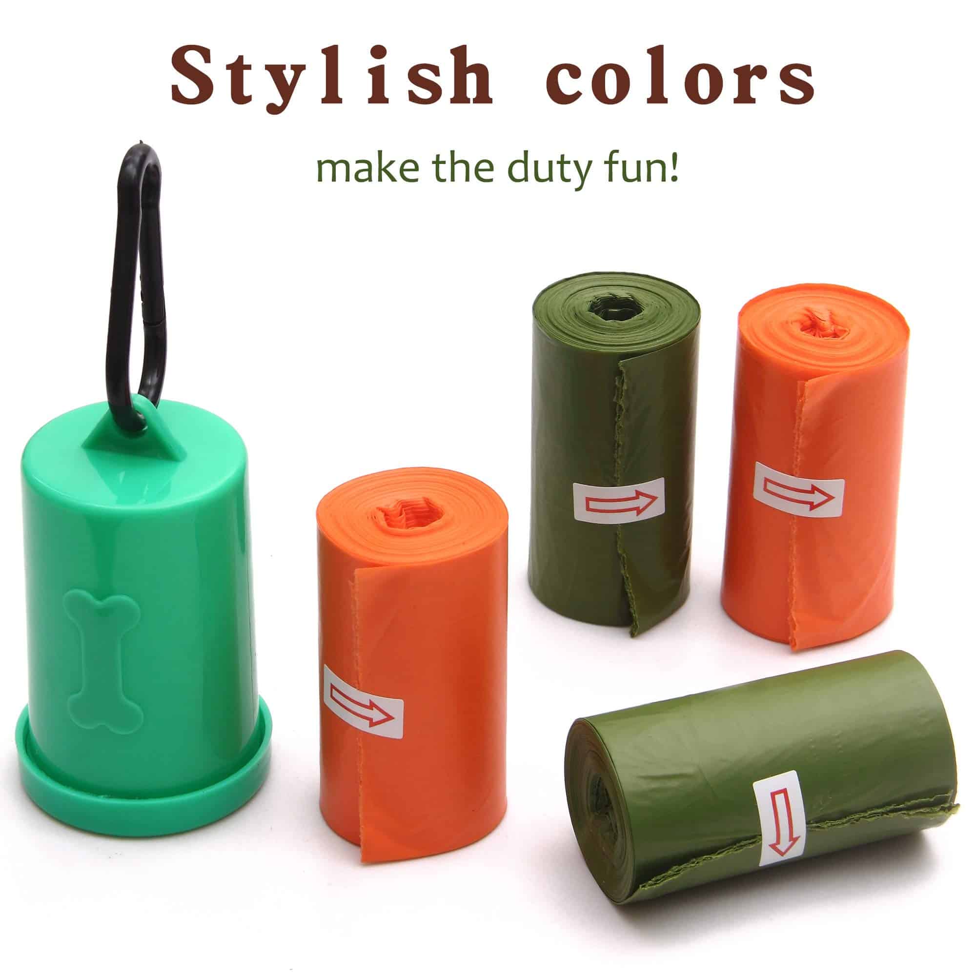 6. PAQUETE DE SUPER VALOR Incluye 720 bolsas para excremento (18 bolsas por rollo; 40 rollos) con 1 dispensador de calidad y 1 clip para correa a juego; ideal para un uso de un año con 2 bolsas al día; rollos coloridos en verde, naranja para agregar un poco de estilo a su deber diario