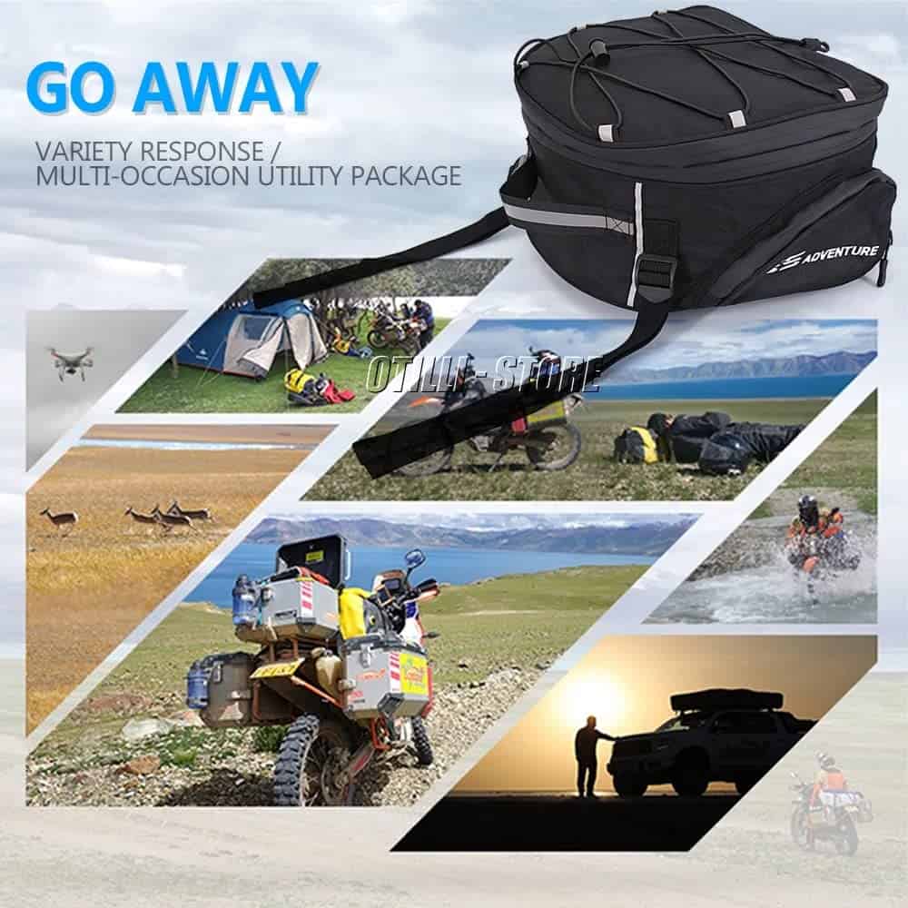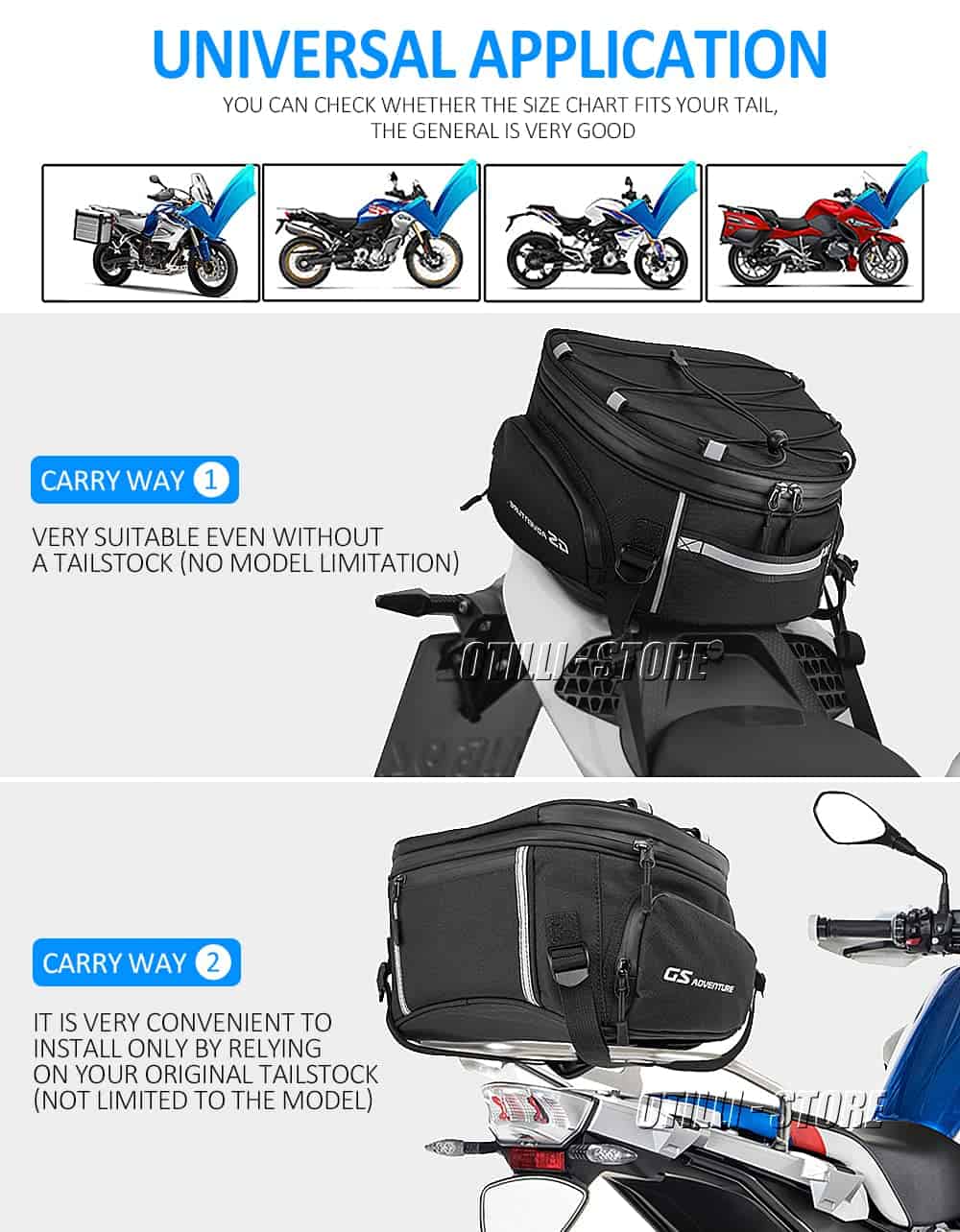 Aplicación universal: Bolsas de cola trasera para motocicletas aptas para todos los vehículos, se pueden utilizar ampliamente en la mayoría de los estilos de motocicletas y vehículos.