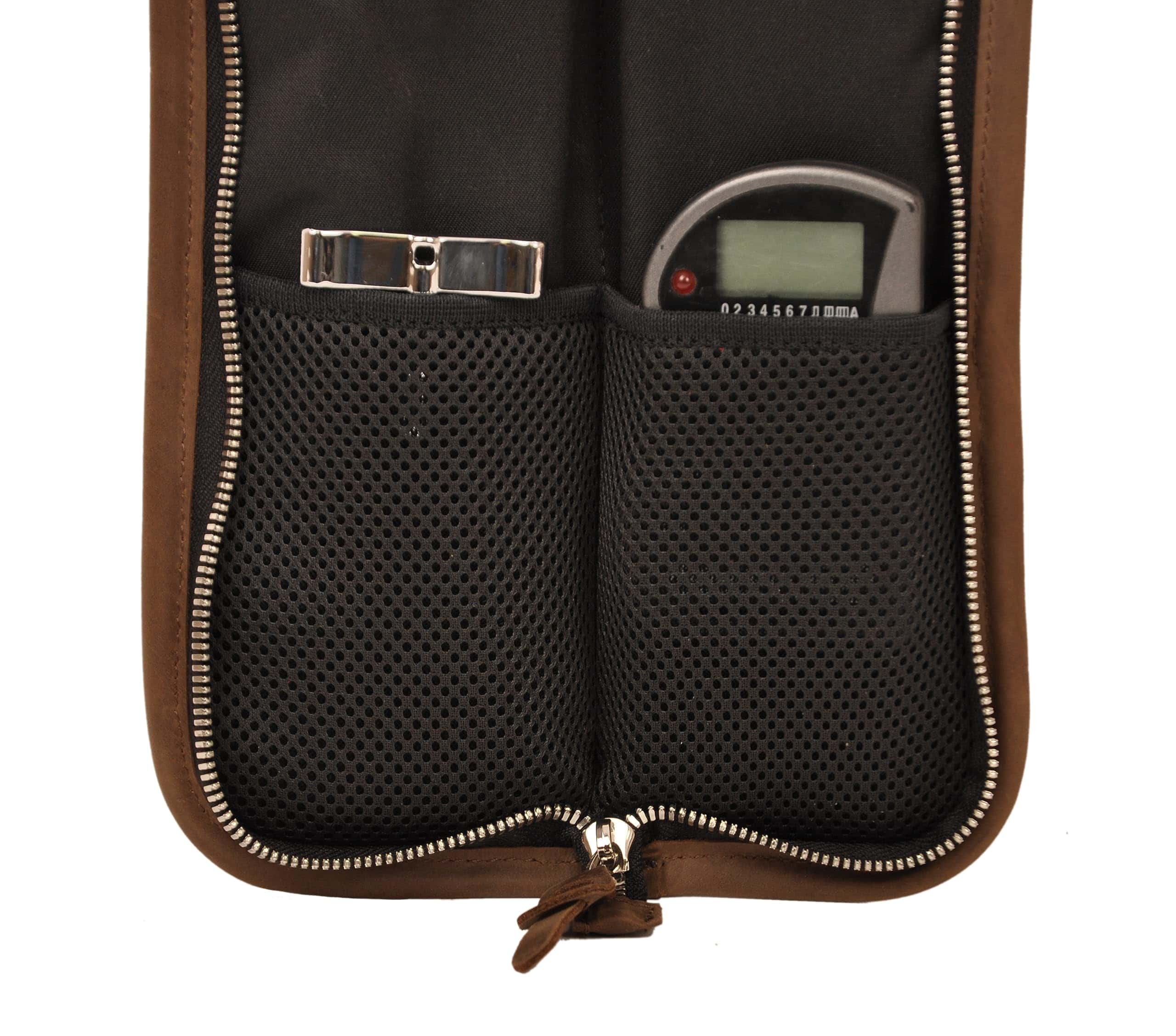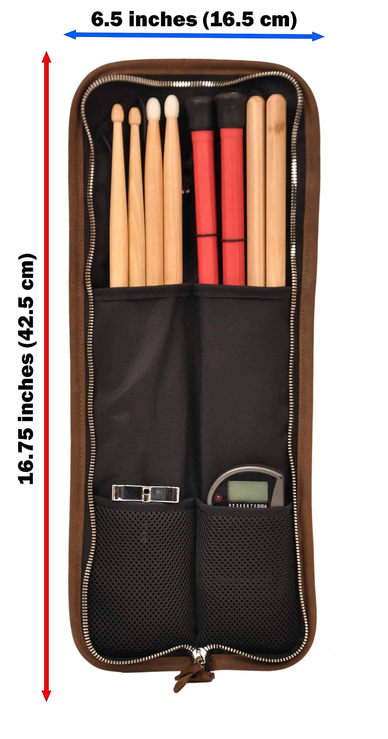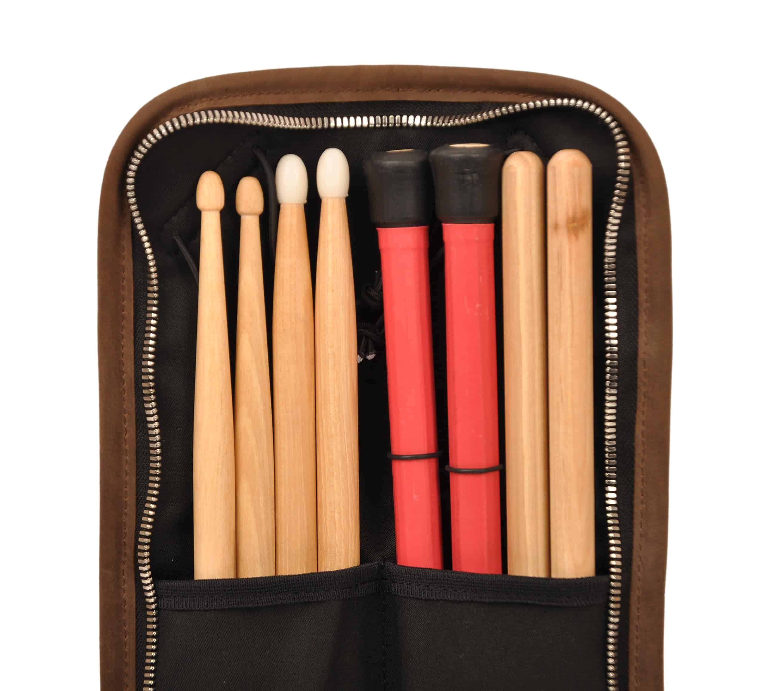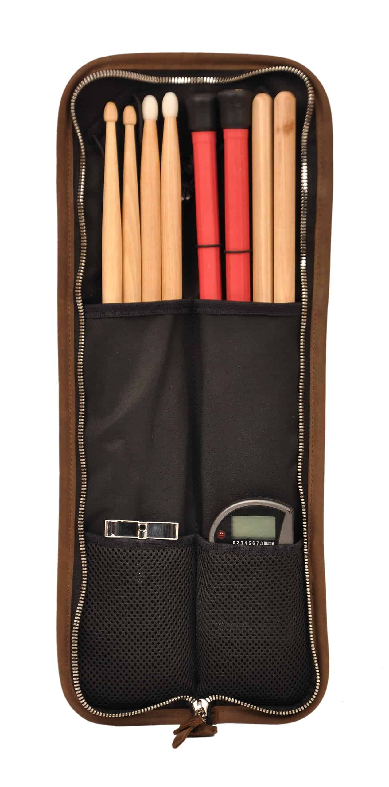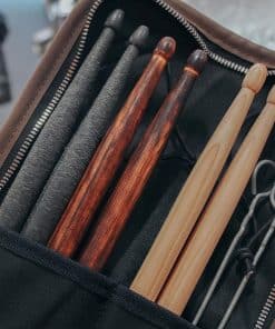Bolso de baquetas hecho a mano KGUBrass es el accesorio perfecto para cualquier baterista. Este estuche exclusivo cuenta con compartimentos para almacenar tus baquetas de forma segura, así como pequeños bolsillos adicionales para guardar otros accesorios importantes. Fabricado con materiales premium como cuero Crazy Horse y lienzo resistente, garantiza durabilidad y estilo. Además, su diseño cómodo incluye un asa para llevarlo de forma vertical y una correa de cuero ajustable para el hombro. El estuche también viene equipado con una cremallera metálica y un gancho de hebilla metálica para un cierre seguro. Ya sea que seas un baterista profesional, aficionado o estudiante, este bolso de baquetas compacto es una excelente idea de regalo. Su tamaño compacto lo hace perfecto para llevar tus baquetas a todas partes de forma segura y elegante.