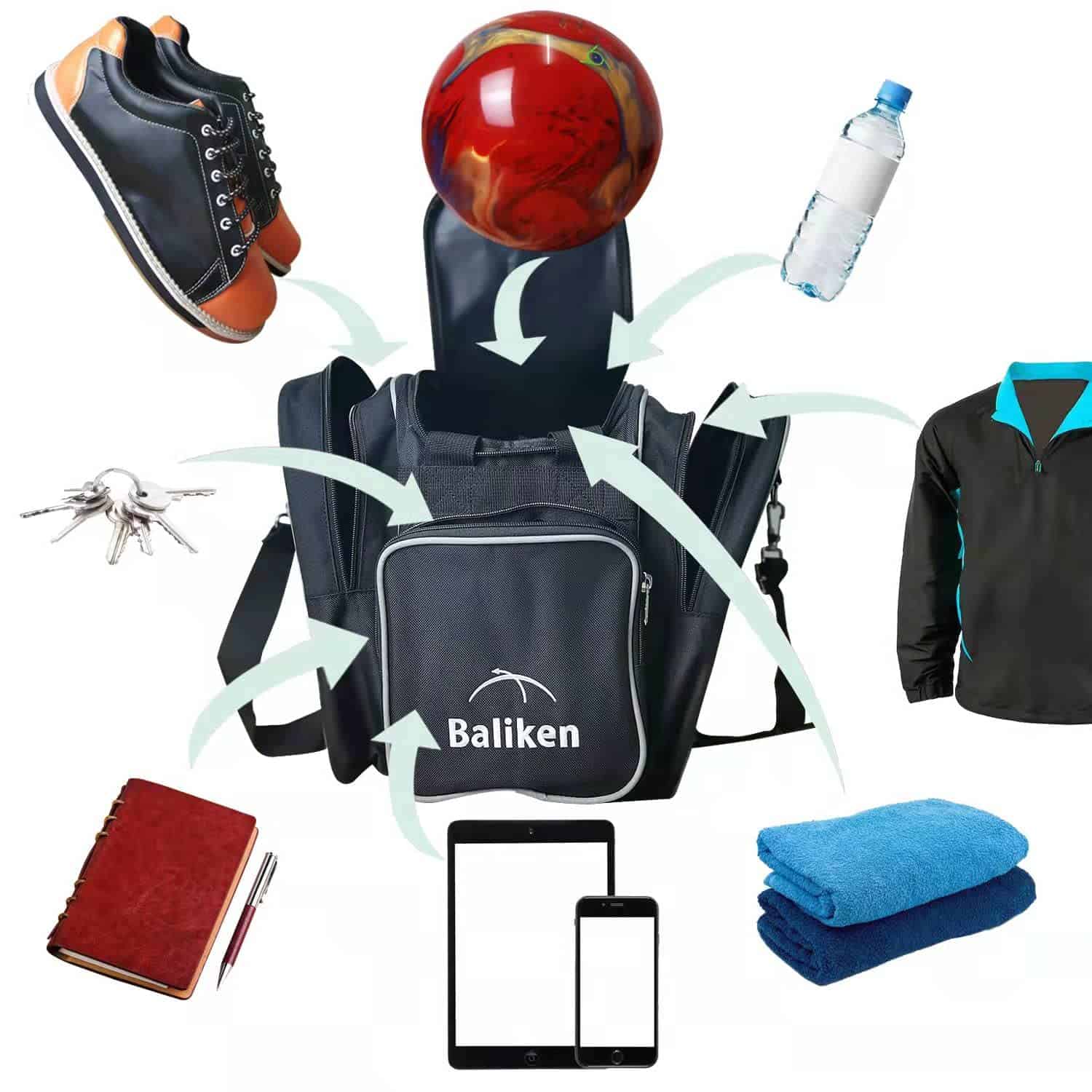 4. ALMACENAMIENTO ADICIONAL: El bolso de boliche de una sola bola está hecho pensando en la flexibilidad, tiene 1 compartimento para zapatos (zapatos de hombre talla «13), 1 compartimento para equipo adicional y un compartimento principal para una bola de boliche.