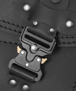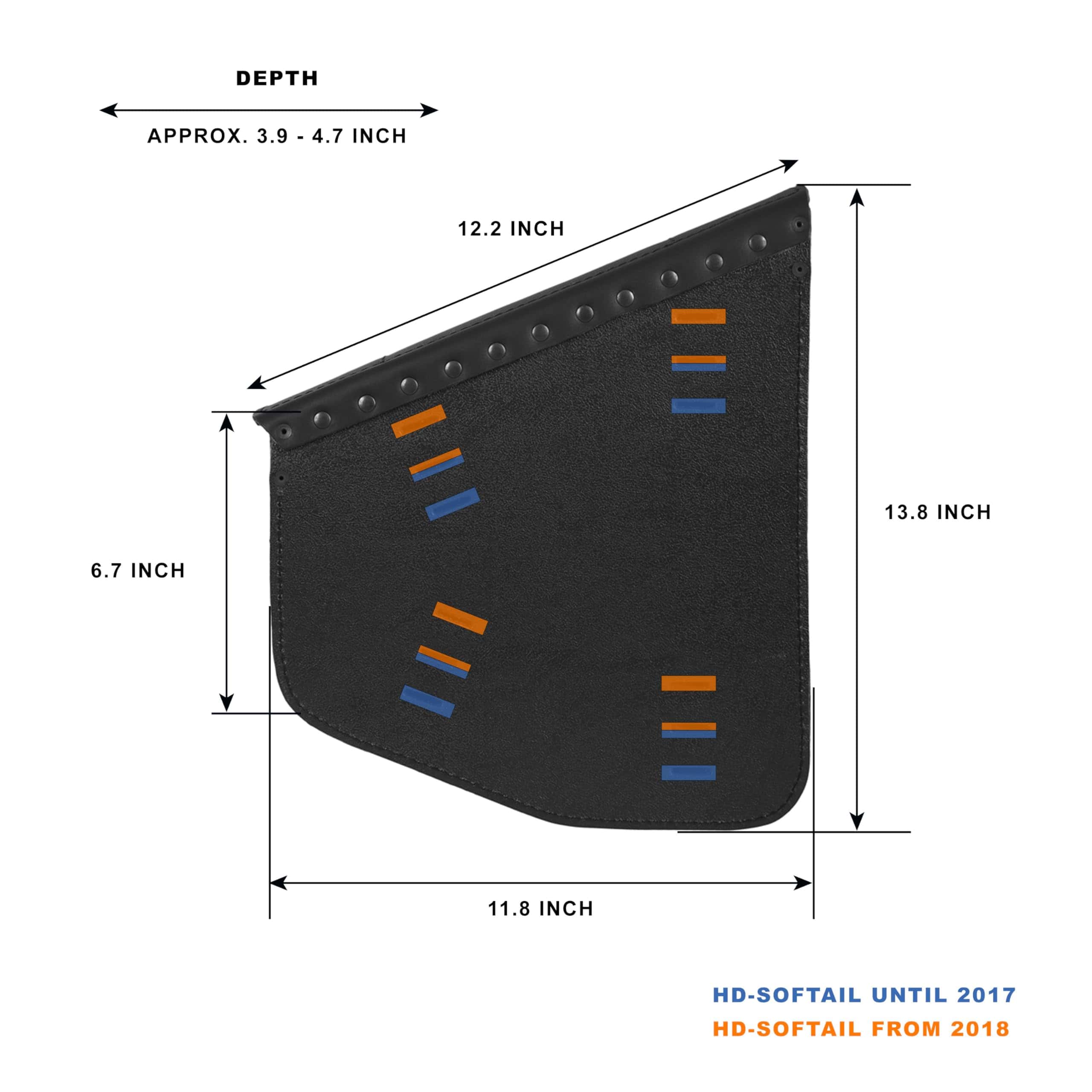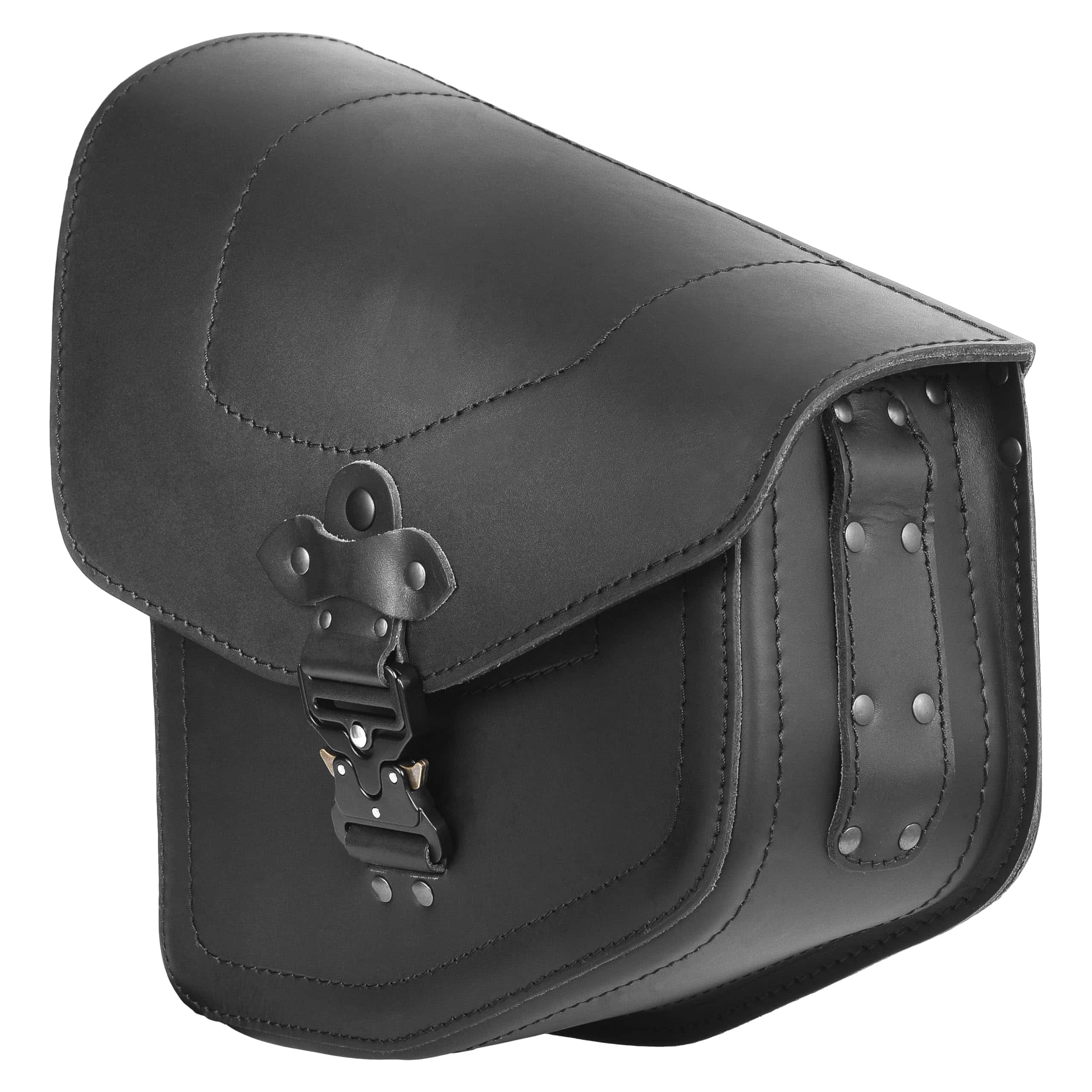 El Bolso de Brazo Oscilante Odin Blackline para Moto es adecuado para Harley Davidson Softail y se ajusta perfectamente a los modelos de Harley Davidson con marcos Softail o de hardtail como Fatboy, Heritage Classic, Breakout y a partir de 2018 Fat Bob / Streetbob / Lowrider S / Deluxe / Slim, etc. El bolso puede adaptarse también a varios otros modelos y marcas como Wildstar, Dragstar, modelos VN, entre otros. Está hecho de cuero genuino y reforzado con inserciones de plástico para mantener la forma del bolso, repeler el agua y proteger la carga. El sostenedor de botellas se puede usar en el lado izquierdo o en el lado derecho del bolso, dependiendo de si desea usar el reposapiés del pasajero o si la placa lateral estaría en el camino. Dimensiónes: Delante 12,50 pulgadas; Arriba 13 pulgadas; Atrás 6 pulgadas; Profundidad 4 pulgadas. Volumen aproximado de 7 litros. Este modelo está en negro satinado mate, con remaches negros y hebillas de metal elegantes. Marca: ORLETANOS. Hebillas de montaje de cuero incluidas. La instalación es relativamente sencilla y no se necesita soporte. Se recomienda utilizar una película protectora transparente para proteger la pintura del brazo oscilante.