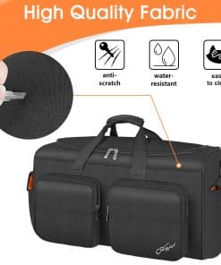 El Bolso de Cable de DJ de Gran Capacidad SNIGJAT es la solución perfecta para mantener su equipo de audio organizado y protegido. Con 6 bolsillos espaciosos, este bolso le permite almacenar sus cables de extensión, micrófonos, pedales y otros accesorios de forma segura. La base desmontable proporciona un soporte sólido y mantiene todo en su lugar, lo que facilita la configuración y desmontaje rápidos. El bolso está hecho de material resistente y duradero, con cremalleras metálicas dobles y un acolchado grueso para proteger sus equipos de arañazos y daños durante el transporte. La base de goma resistente evita el deslizamiento y protege su equipo en entornos exteriores. Con múltiples opciones de transporte, incluida una correa para el hombro ajustable y una asa resistente, este bolso es ideal para DJs, músicos y viajeros que buscan llevar su equipo de manera segura y conveniente. Además, este bolso de cable de DJ también se puede usar como un organizador de cables para su equipo en casa o en el estudio. ¡No espere más para obtener este práctico y duradero bolso de DJ!