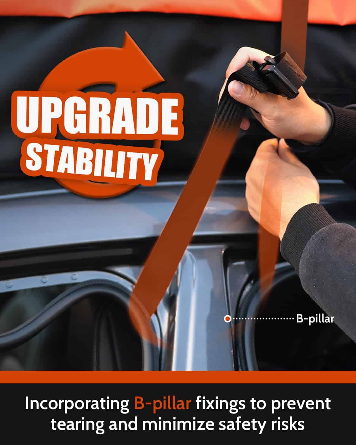2. Resistencia y Durabilidad Extremas: Tejidos reforzados 840D y técnicas avanzadas de soldadura por fusión para garantizar conexiones sólidas en todo momento. Un método de fijación mejorado asegura un ajuste seguro, eliminando preocupaciones de seguridad asociadas con riesgos de desgarro.