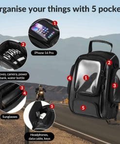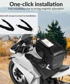 Este bolso de depósito para motocicleta está fabricado con tela Oxford 900D, un material reconocido por su resistencia y durabilidad. Después de pruebas rigurosas, el producto ha demostrado resistir 20,000 ciclos de fricción sin deterioro alguno. Este producto representa el accesorio ideal para motocicletas.