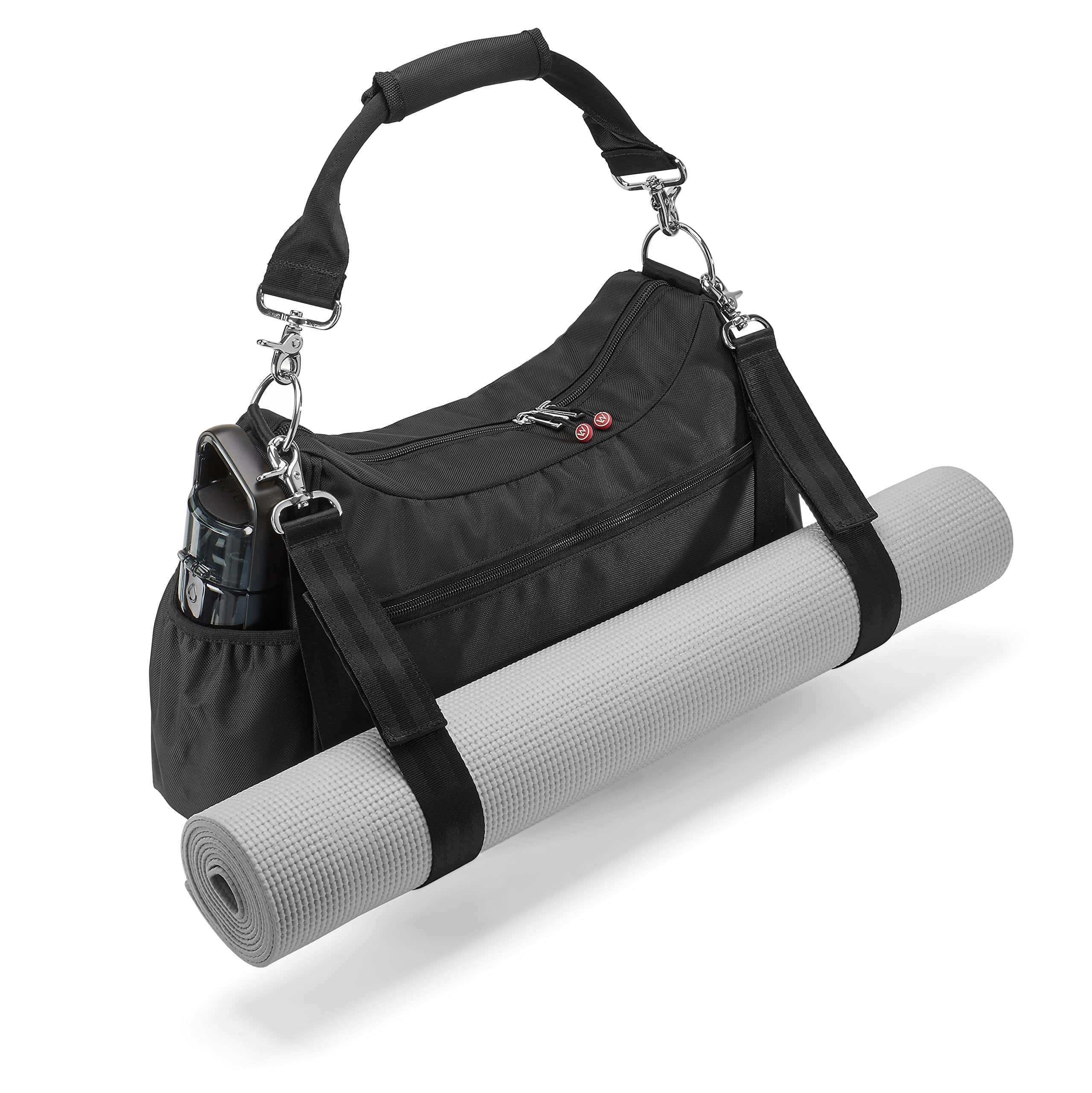 El bolso presenta un portamat de yoga de liberación rápida, múltiples compartimentos para una máxima organización, correas acolchadas para mayor comodidad, y un material de nylon balístico de primera calidad que garantiza su durabilidad a lo largo del tiempo.