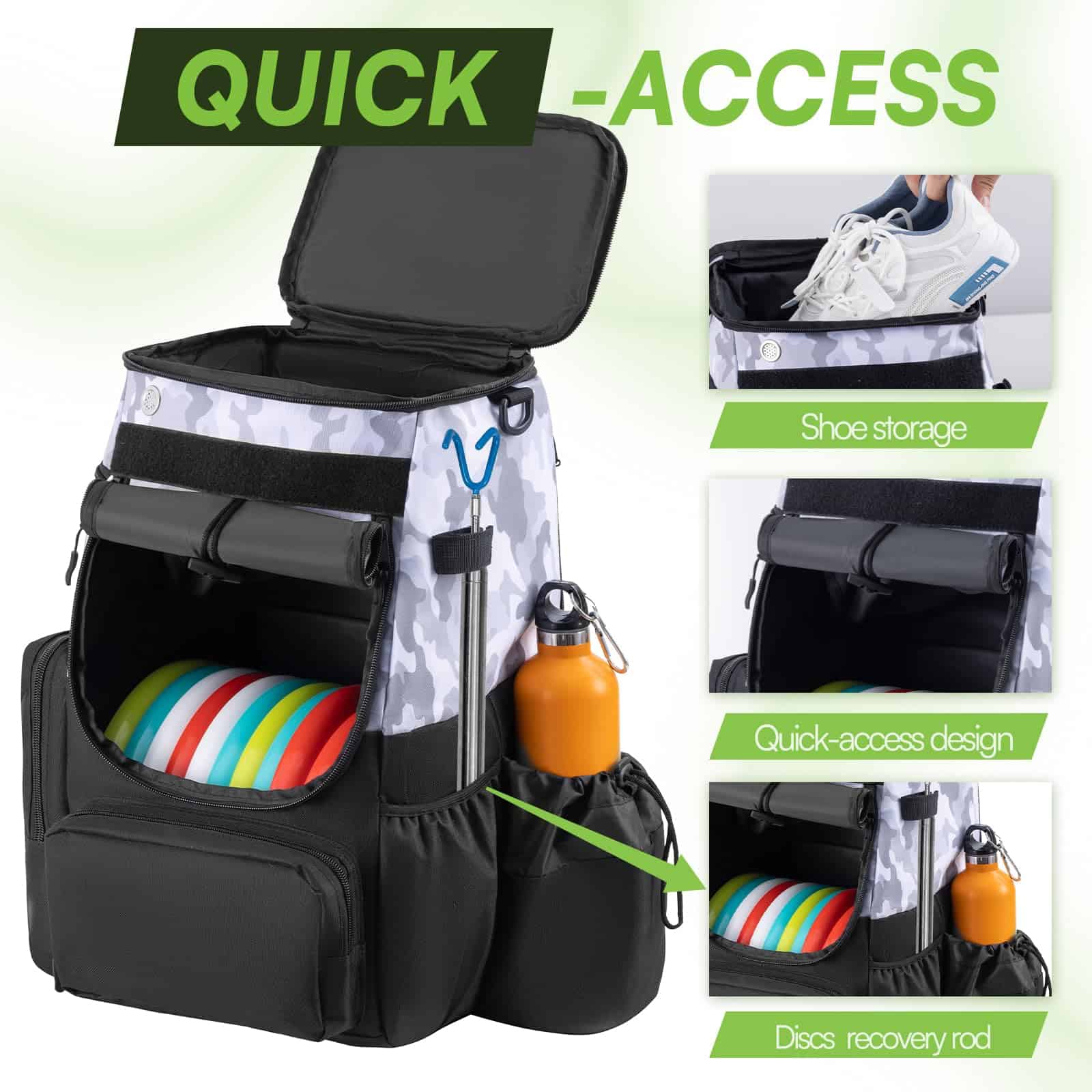 Bolso de Golf de Disco UNIHIMAL combina durabilidad y comodidad. Con un diseño compacto y múltiples bolsillos, este bolso es ideal para los amantes del golf de disco. Cuenta con un sistema de ventilación para eliminar olores y un fondo antideslizante para mantenerlo erguido. Adicionalmente, viene con una garantía limitada de por vida para cubrir posibles defectos de material y mano de obra.