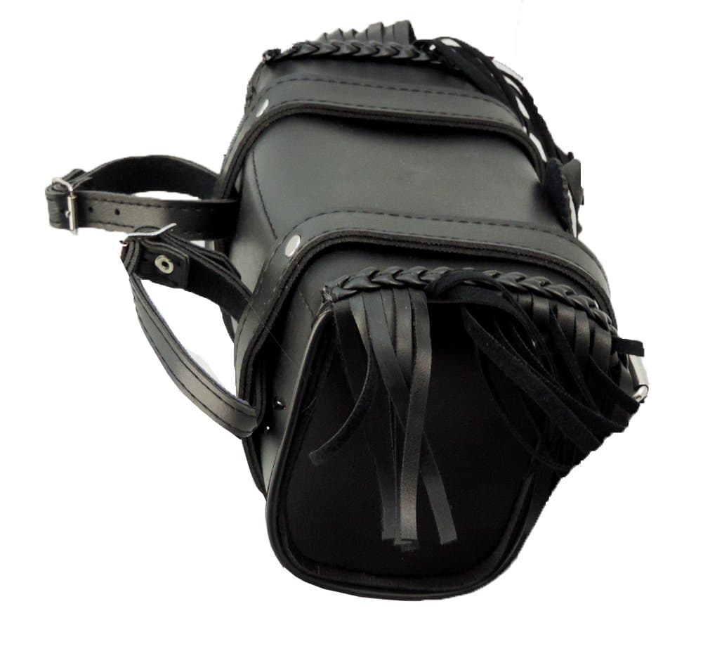 Este bolso de herramientas está hecho de cuero genuino de alta calidad y cuenta con un elegante ribete de flecos. Ideal para aquellos que buscan un estilo único y práctico para llevar sus herramientas mientras viajan en su motocicleta. Con un diseño resistente y duradero, este bolso es perfecto para guardar herramientas de forma segura durante sus aventuras en la carretera.