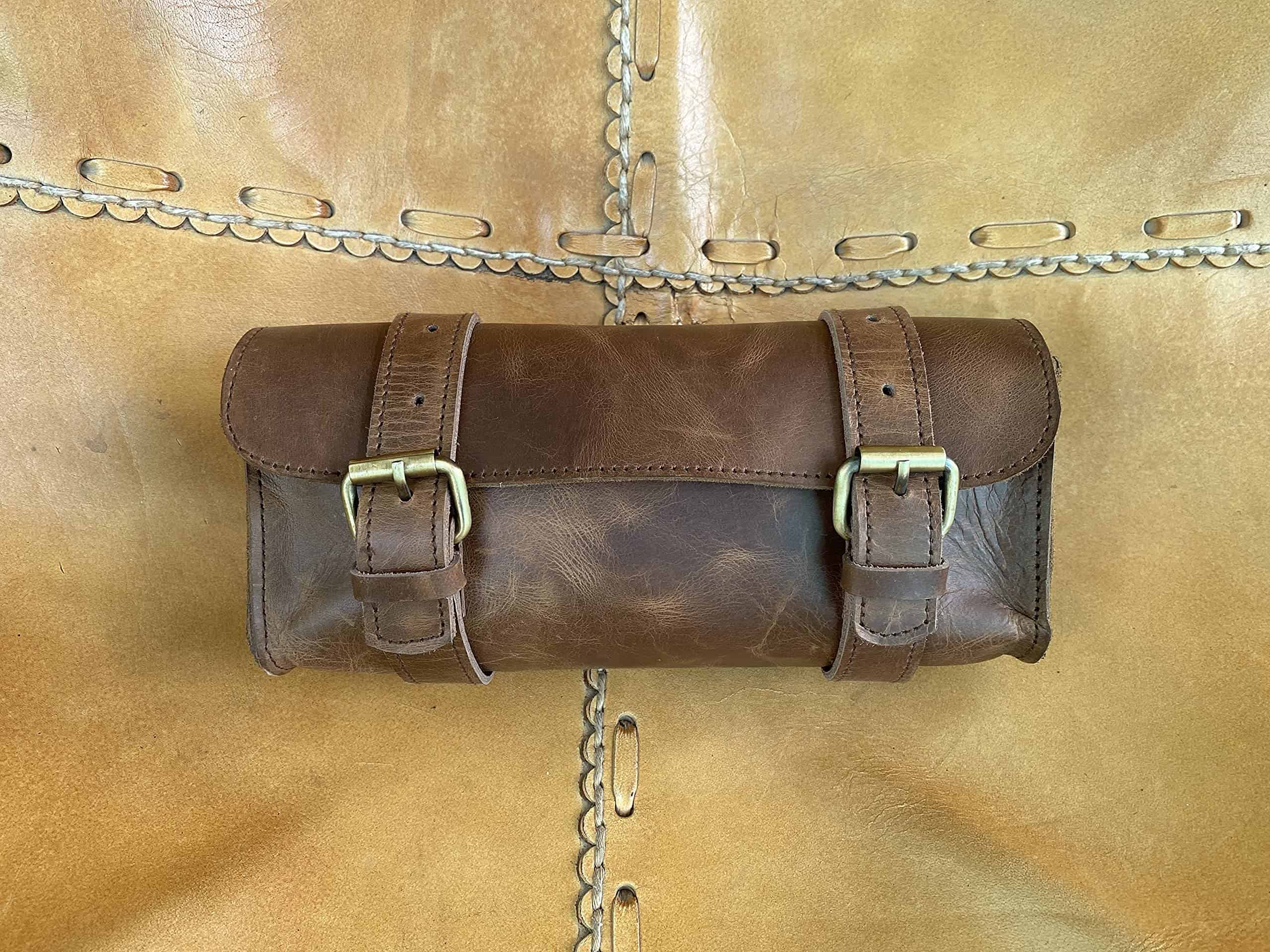 Bolso de herramientas para manillar de piel de búfalo