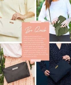 El Be Quick es todo lo que necesitas para cuidar a tu bebé mientras haces recados por la ciudad. Guarda pañales y toallitas en este conveniente estuche de transporte, y cuélgalo de tu cochecito o muñeca. Para salidas más largas, usa el Be Quick para mantener tu bolso de pañales más grande ordenado y organizado. Después de que tu bebé haya pasado de los pañales, este elegante bolso dobla como una bolsa de muñeca o bolso de mano, perfecto para ocasiones casuales con tus amigos. Versátil, hermosa y siempre a la moda, la colección Chromatics demuestra que los colores sólidos no son en absoluto básicos! Esta elegante línea ofrece tres combinaciones de colores modernas, todas cuidadosamente elaboradas en una tela suave y lavable a máquina. ¡Elige entre Oliva con su forro de champán satinado, o opta por Rubor o Rojo Tibetano, todas con un forro de microfibra tonal que se coordina perfectamente con el estampado exterior! ¡Los tres esquemas de color pueden mezclarse y combinarse fácilmente para cualquier atuendo y estado de ánimo, y todos están rematados con nuestro nuevo y actualizado hardware en oro rosa! Tanto práctico como fashion, ¡querrás coleccionar cada color de esta cautivante línea Chromatics!