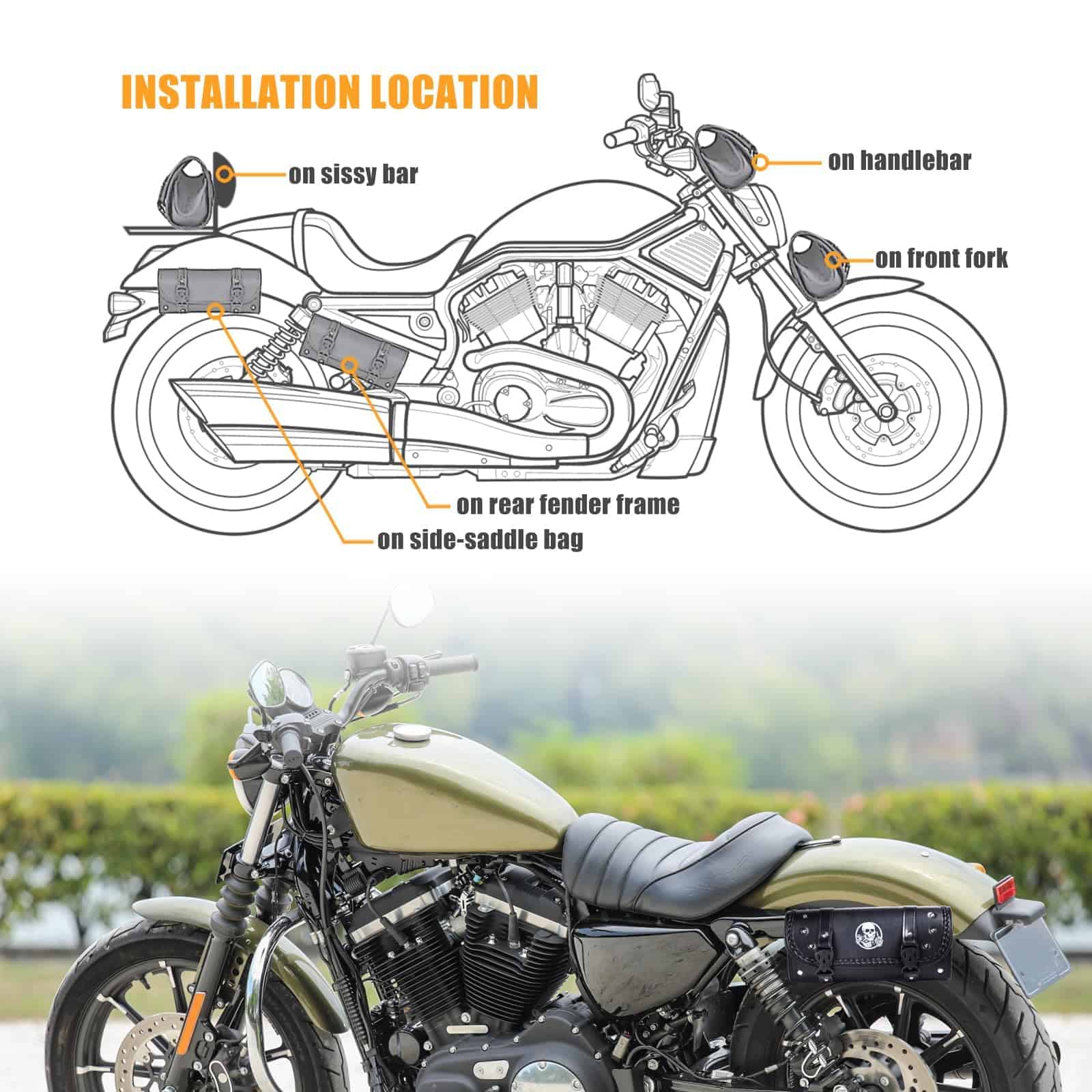 Bolso de Horquilla para Motocicleta Goldfire de Cuero PU Bolsa de Herramientas para Manillar Bolsa de Rollo para Sissy Bar con 2 Correas de Fuerza Extra. Bolso de horquilla de cuero PU para motocicleta, universal para manillar de horquilla frontal sissybar con 2 correas. Lugar de instalación: sissy bar, horquillas delanteras, manillar, portaequipajes trasero. Características: Bolsa de Almacenamiento de Horquilla Delantera Sissybar Manillar Universal Bolso de Rollo para Motocicleta. Características: Bolsas de cuero Harley para motocicletas, bolsa de manillar de motocicleta, bolsa de manillar Harley, bolsa de motocicleta, Bolsa de Manillar de Motocicleta, bolso de horquilla de motocicleta, bolsas de sissy bar para motocicletas, bolsa de herramientas de motocicleta, bolsa de equipo, almacenamiento de motocicletas, bolsa frontal de motocicleta