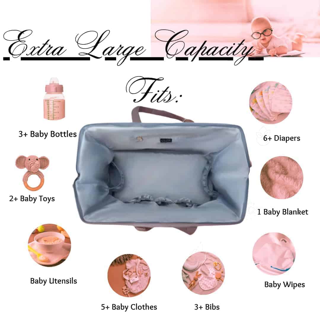 Este bolso de pañales suave, ligero, elegante y acolchado es ideal para las mamás que van de un lugar a otro. Ya sea utilizado como bolso de hospital para el parto y la entrega, un día en la playa, un día en el parque o una escapada de fin de semana, este bolso ofrece la conveniencia de empacar todas las necesidades del bebé en un solo bolso!