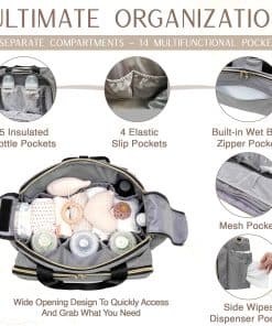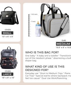 2. Organización sin problemas. Con 2 compartimentos espaciosos, 9 bolsillos multifuncionales y 5 bolsillos para botellas aislados, este bolso se mantiene organizado y fácilmente accesible incluso cuando está completamente lleno, gracias a su diseño de apertura amplia. Los compartimentos ofrecen amplio espacio para artículos más grandes como toallitas y cambios de ropa, mientras que los bolsillos dedicados mantienen los artículos esenciales del bebé ordenados y accesibles. Los bolsillos para botellas aislados mantienen las temperaturas durante períodos prolongados, ofreciendo la máxima comodidad para los padres en movimiento. 3. Construido para durar. Fabricado con tela Oxford impermeable premium, este bolso de pañales ofrece una construcción duradera y una excepcional longevidad. La tela resistente a las rasgaduras, las costuras reforzadas y las cremalleras de metal de alta resistencia resistirán el uso diario, los viajes frecuentes y el desgaste de la vida como padre. El forro interior impermeable asegura que los derrames en el interior se puedan limpiar fácilmente, mientras que la tela exterior resistente a la suciedad asegura un mantenimiento fácil, manteniendo tu bolso impecable durante años. 4. Tu bolso de pañales de viaje. Perfecto para todas tus aventuras familiares, este bolso de pañales para bebé cuenta con numerosos bolsillos y compartimentos espaciosos lo suficientemente grandes como para que quepa una computadora portátil. Ideal para uso diario, viajes cortos a medianos, viajes en avión y en coche, y equilibrar el trabajo y la crianza, cabe perfectamente debajo de los asientos de avión, lo que lo hace adecuado para viajar en avión como artículo personal. Ofreciendo una organización excepcional tanto para tus esenciales como para los de tu bebé, es una solución compacta para viajar con un bebé. 5. Comodidad personalizada para cada aventura. Diseñado pensando en tu comodidad, el bolso de pañales Mellories cuenta con correas acolchadas para la mochila que brindan soporte y reducen la tensión, incluso cuando se llevan cargas más pesadas durante períodos prolongados. La longitud de la correa ajustable garantiza un ajuste perfecto para diferentes usuarios y permite una fácil personalización para adaptarse a tus preferencias de transporte. Ya sea que prefieras un estilo de mochila, bandolera o de un hombro, este bolso brinda comodidad para cada salida. 6. Listo para regalar. Empaquetado en una elegante bolsa de polvo, el bolso de pañales Mellories está listo para ser presentado como un regalo de Baby Shower considerado o una sorpresa para los padres esperando. Más que solo un accesorio elegante, es una solución práctica para las necesidades diarias de crianza, ofreciendo versatilidad y funcionalidad que cualquier padre apreciará. Este bolso es tanto un regalo práctico y elegante como un artículo esencial para las aventuras diarias con tu pequeño.