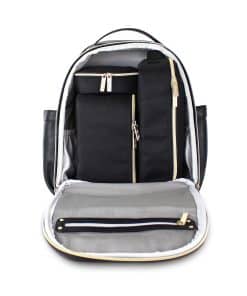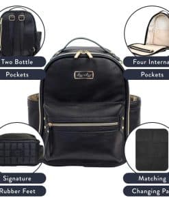 ¡Manos libres en un apuro! El bolso de pañales Mini Backpack Diaper Bag de Itzy Ritzy es el tamaño perfecto para agarrar y salir rápidamente o cuando solo necesites llevar lo esencial. ¡No dejes que su tamaño te engañe – la mini mochila tiene ocho bolsillos (cuatro internos y cuatro externos) e incluye un cambiador a juego. También cuenta con los pies de goma característicos de Itzy Ritzy que protegen la base del bolso de superficies sucias y del desgaste. Las cómodas correas de la mochila te permiten estar manos libres y listo para explorar con tu pequeño!