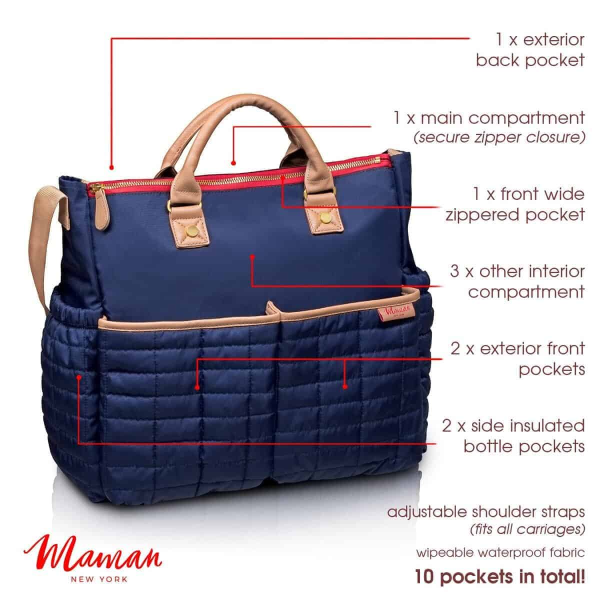 1. FASHIONABLE AND FUNCTIONAL – Los bolsos de diseñador MAMAN tienen espacio para todas las necesidades de mamá. El bolso de pañales de la edición clásica MAMAN tiene una alta calificación en moda y función. ¡Finalmente, un bolso de pañales que realmente disfrutarás llevar contigo!.