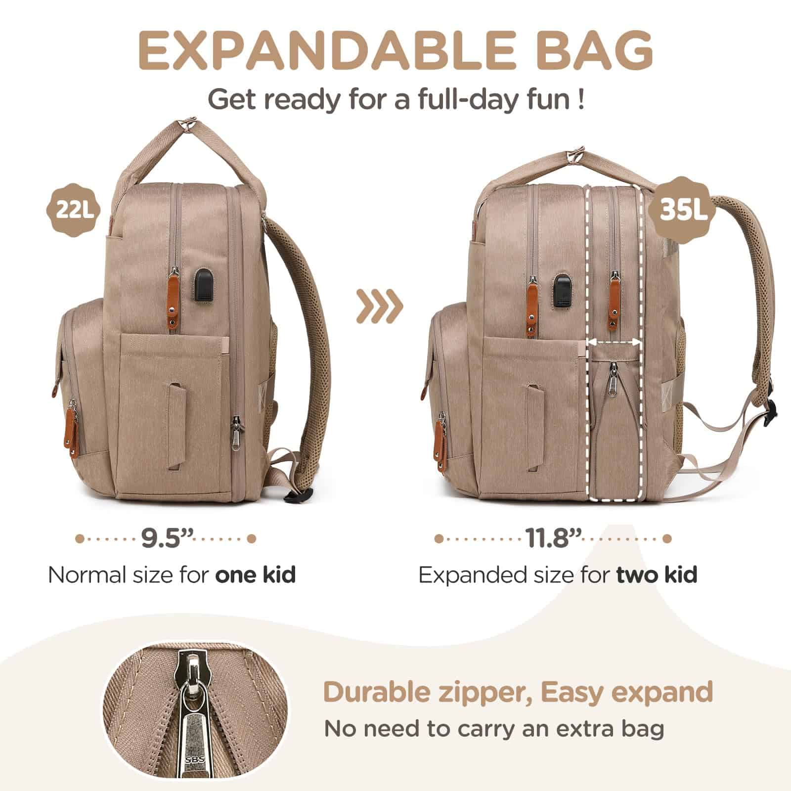 Bolso de Pañales Extra Grande Qualyphant para 2 Niños –