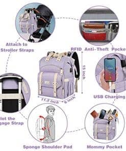 Bolso de pañales Jiefeike, morado, mochila de viaje para